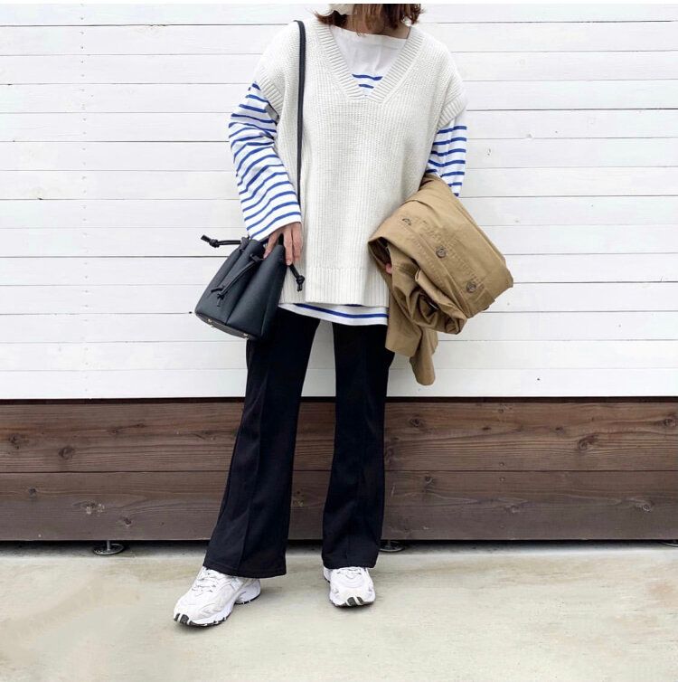 ボーダーをチラ見せさせることで、無地のTシャツやシャツを合わせるよりも抜け感が演出でき、こなれた印象を与えてくれます。ベストを重ねるだけで、トップスの印象がまったく変わり、より一層おしゃれを楽しむことができますよ。
