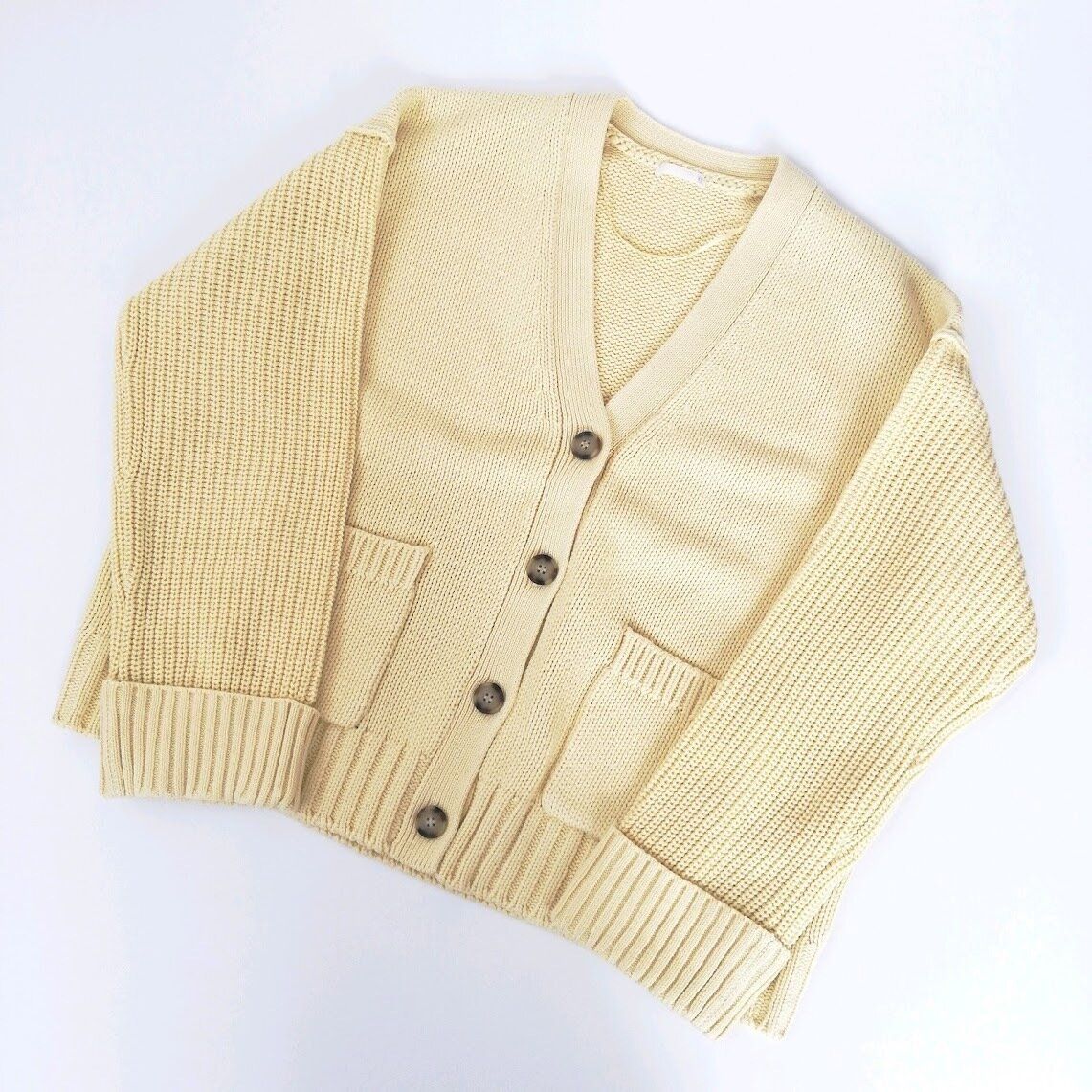 大人世代におすすめな、たまご色カーディガン。ぜひ参考にしてみてくださいね。
