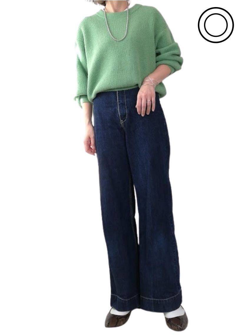 明るいカラーニットはトレンドど真ん中!シンプルなゆったりシルエットで、着回し力も抜群の1枚です。