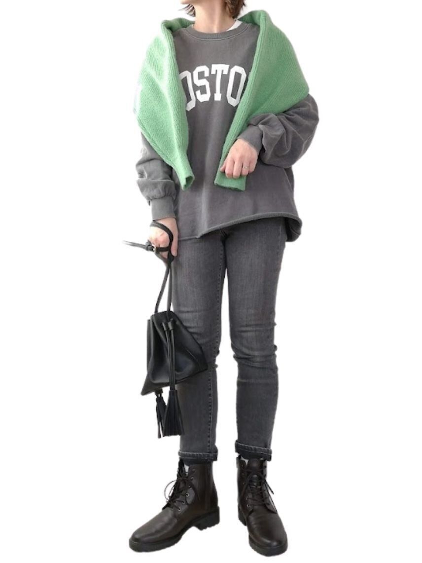 ふつうに着るだけではなく、肩にかけてアクセントとして使うのもおすすめ。