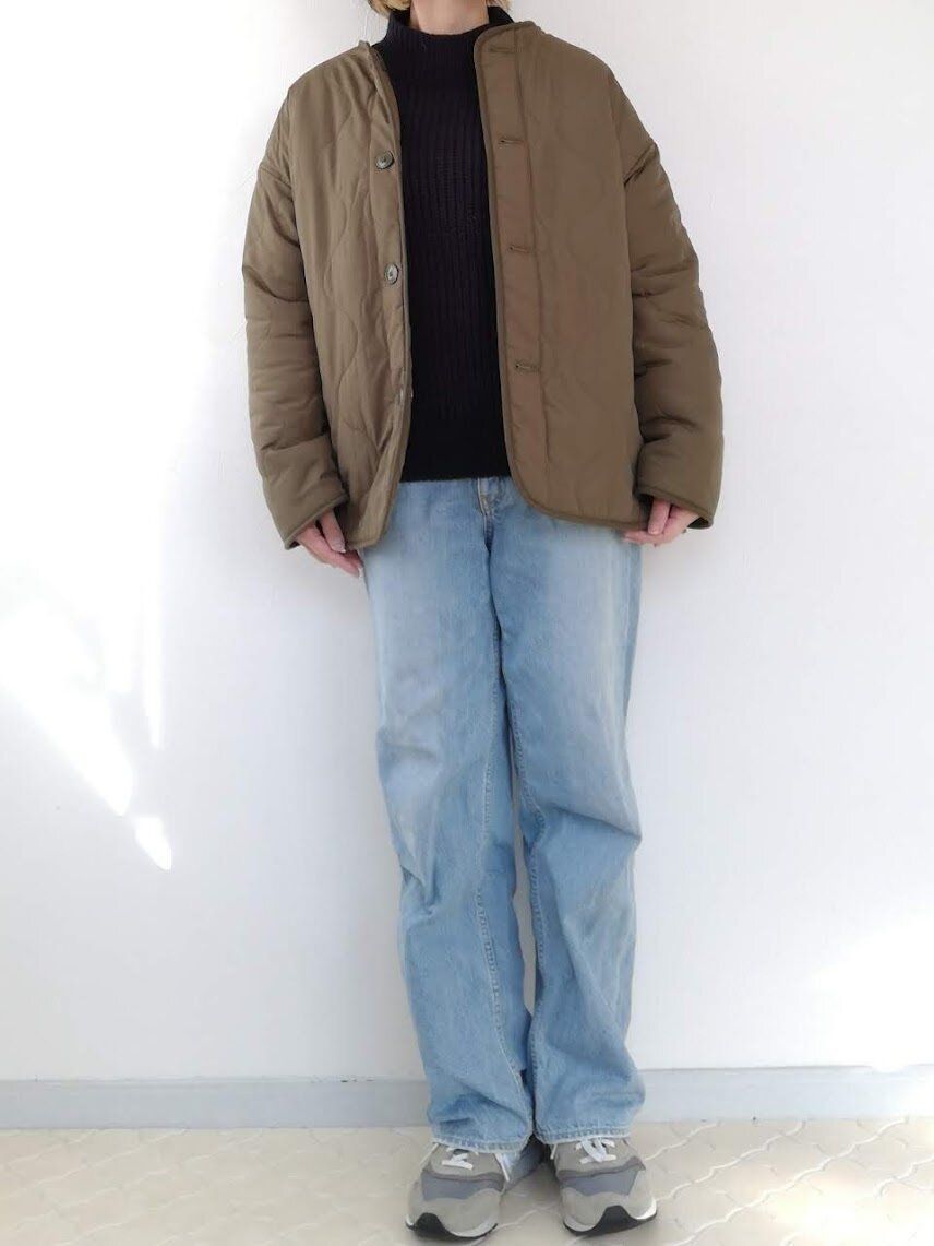 オーバーサイズのアウターにワイドシルエットのデニムを合わせると、全体的にもっさりとしたシルエットに見えてしまいます。