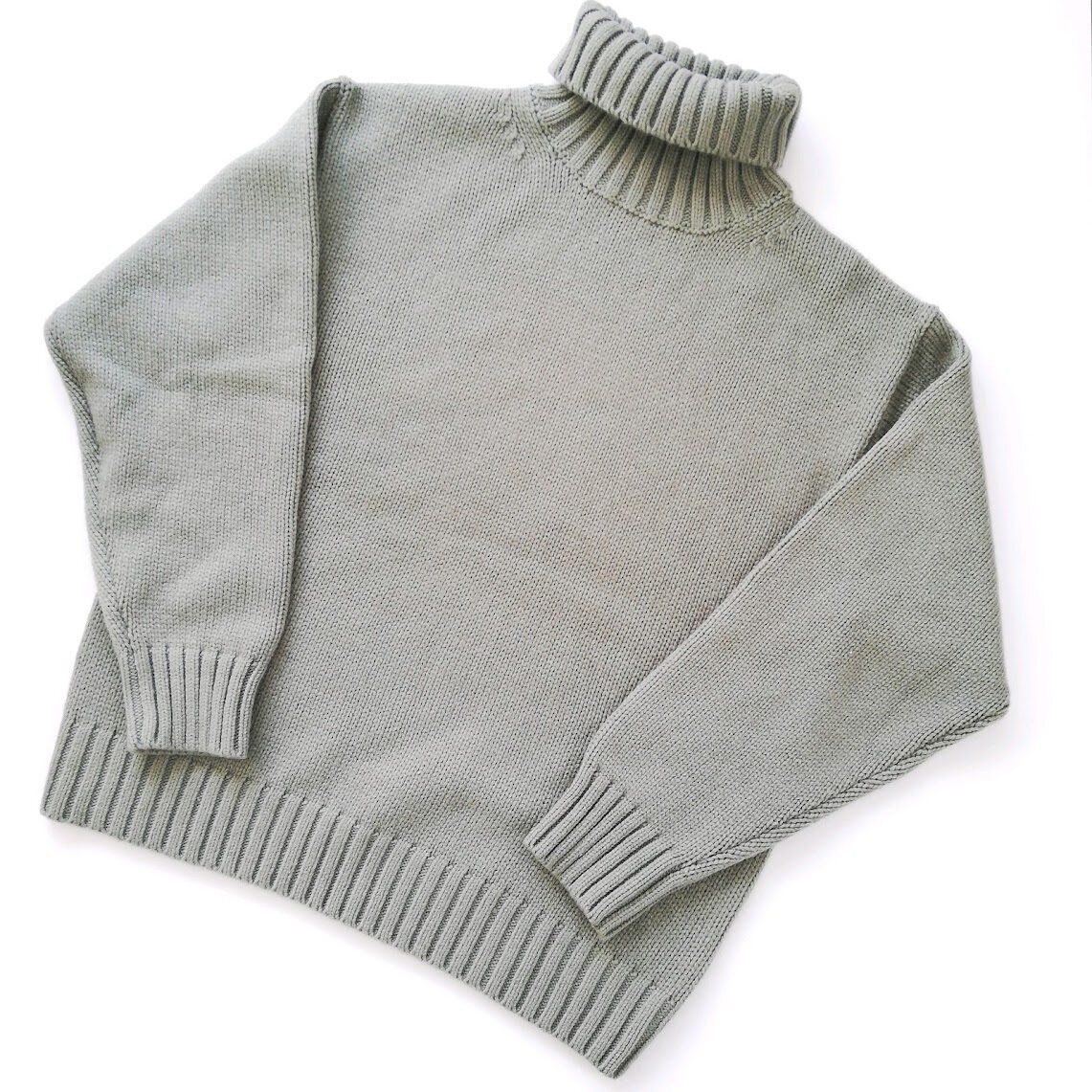 「ローゲージ」とは、ざっくりした編み目の荒いニットのこと。 存在感があり、リラックスした雰囲気のタートルネックセーターです。