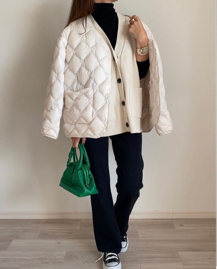 重たい印象を与えがちなダウンを軽やかな印象に変えてくれるおすすめカラーです。