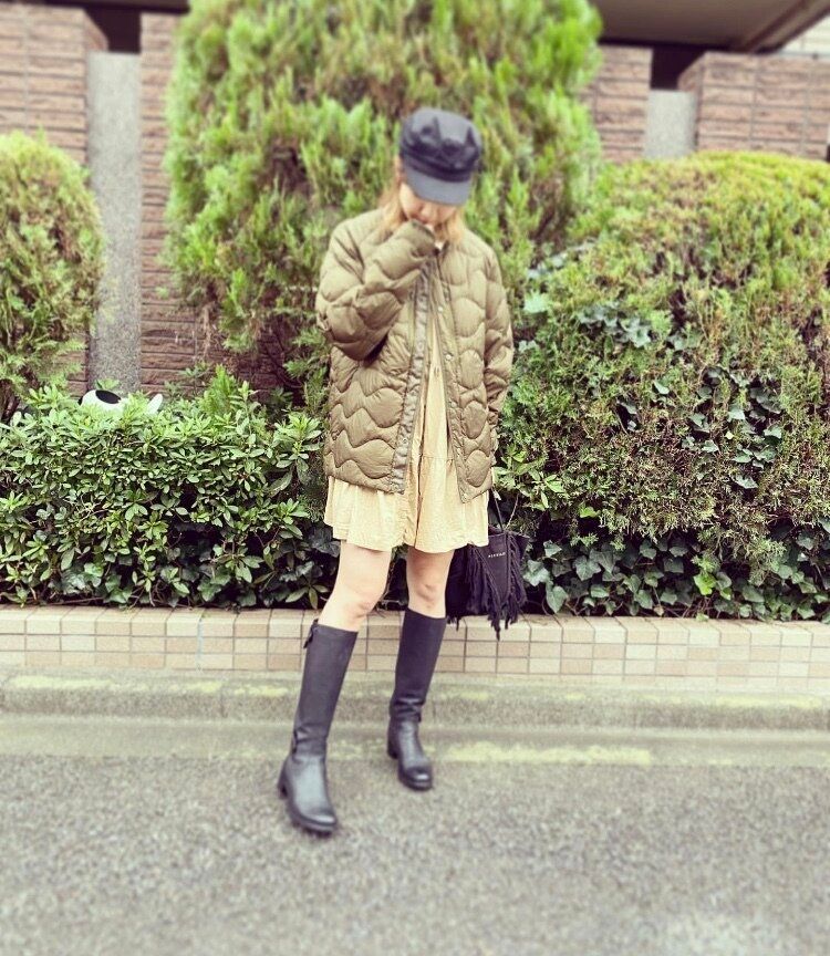 アウターがシンプルなデザインなので主張しすぎず、トレンドアイテムのロングブーツをより一層際立ててくれます。いい意味で引き立て役として使えるアウターです。