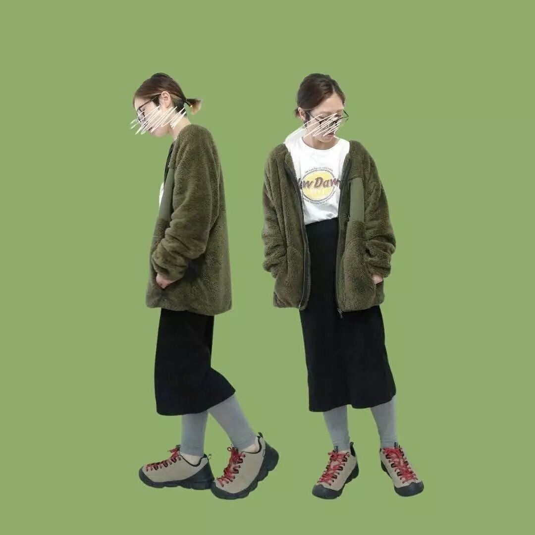 ”着る毛布”とも呼ばれるふかふかなフリースジャケットは、カジュアルコーデにぴったり!