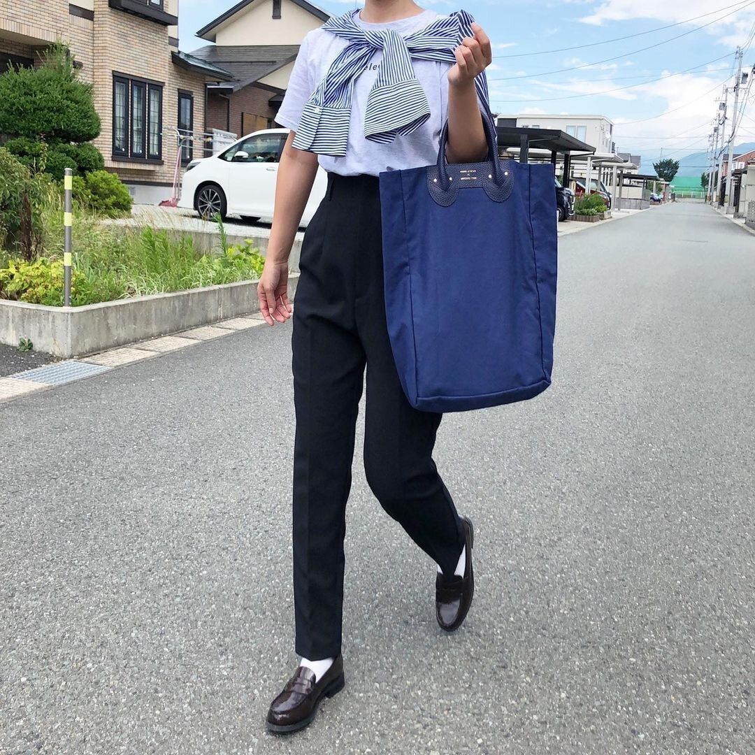 ローファーやきれいめトートバッグで、大人らしく洗練されたカジュアルコーデに。