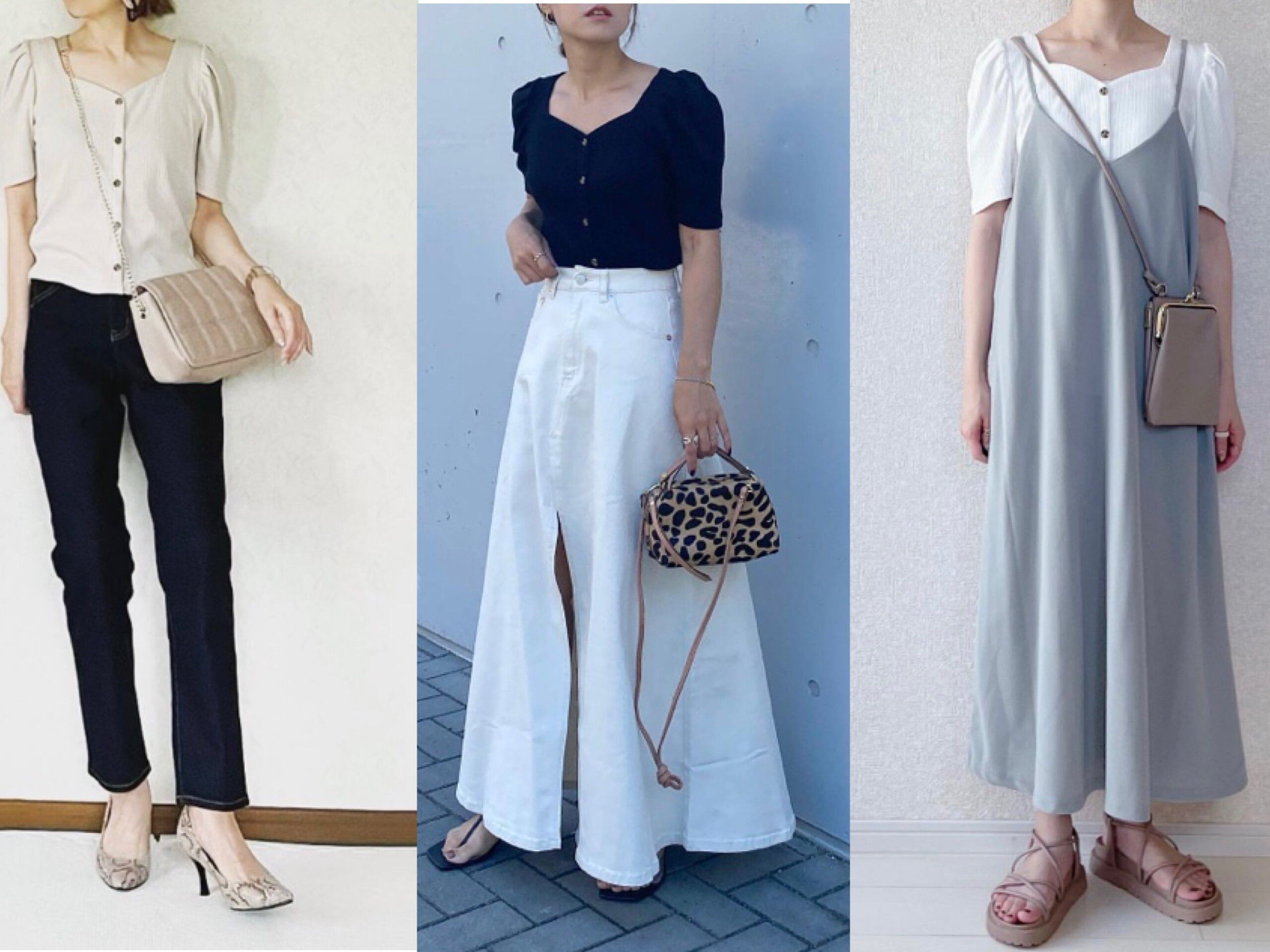 今回はフロントボタンボリュームスリーブT(半袖)Qを使ったお手本コーディネートを5選ご紹介します。