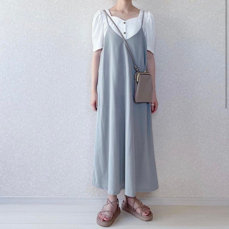 サロペットタイプのお洋服は合わせるトップスがマンネリ化しがちなのですが、フロントボタンボリュームスリーブT(半袖)Qを合わせれば、さらにトレンドを抑えた着こなしができます。カジュアルになりすぎない、レディライクなコーディネートはぜひまねしたいですよね。