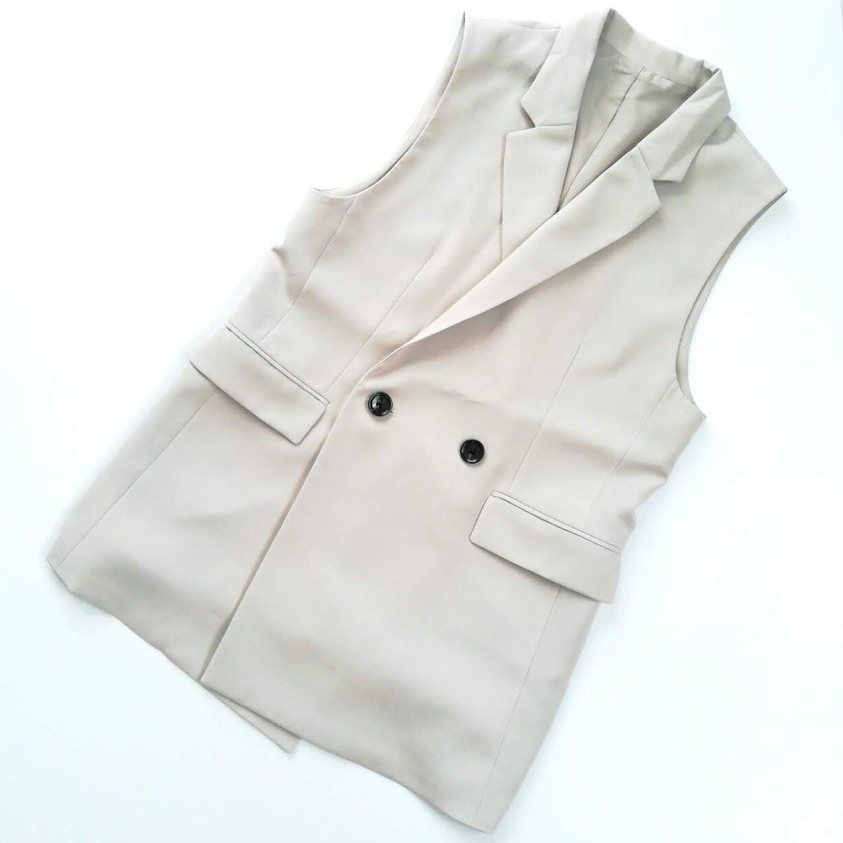 プチプラに見えないと評判の、GUの「テーラードダブルベスト」が40代にもおすすめなんです。