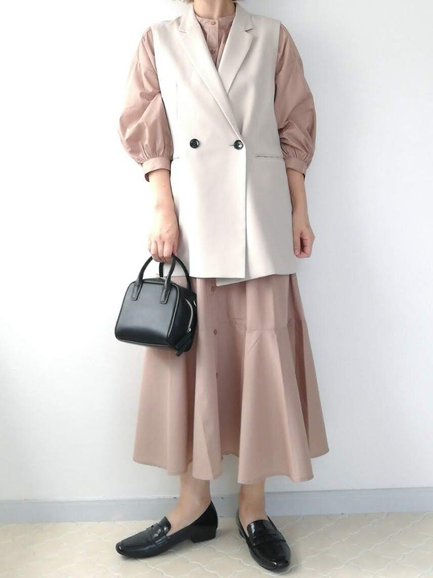 ベストの幅と同じくらいのタイトスカートを選ぶことで、バランスよく着こなせますよ。