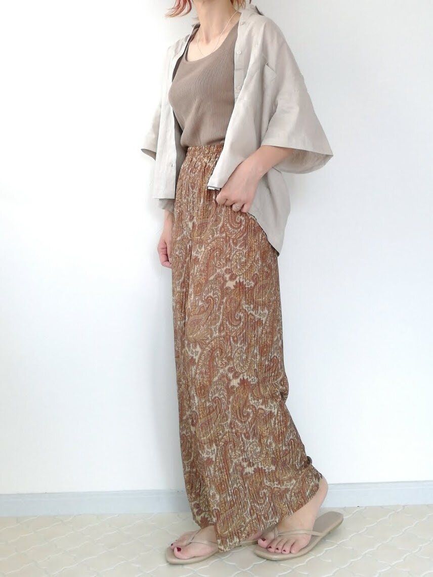 ノースリーブに羽織ったリラックススタイル。