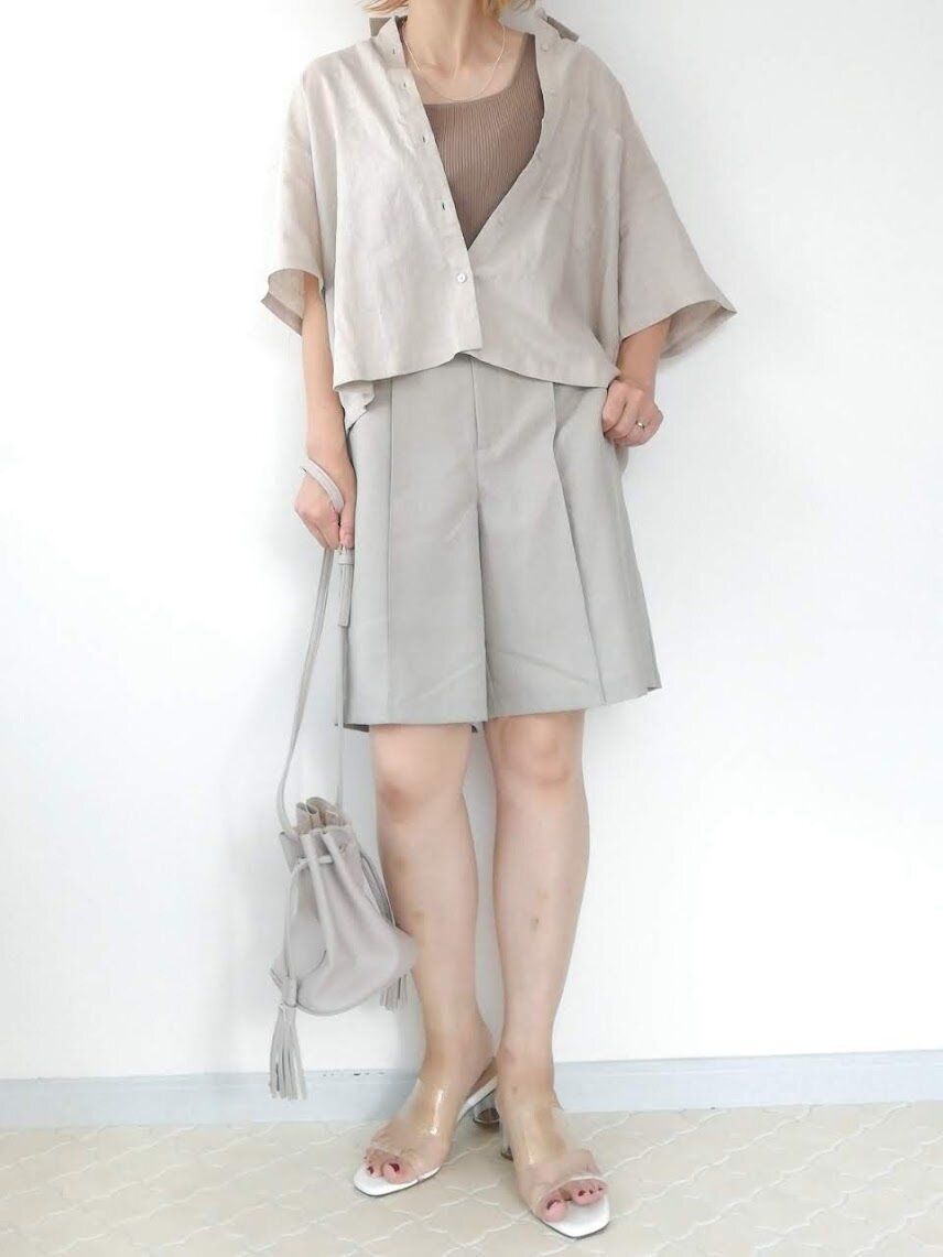 今年はハーフパンツがトレンド。足を出すのはちょっと……というかたは、セットアップ風コーデがおすすめ。統一感があり、全身バランスよい見た目になるので、おしゃれ度急上昇!