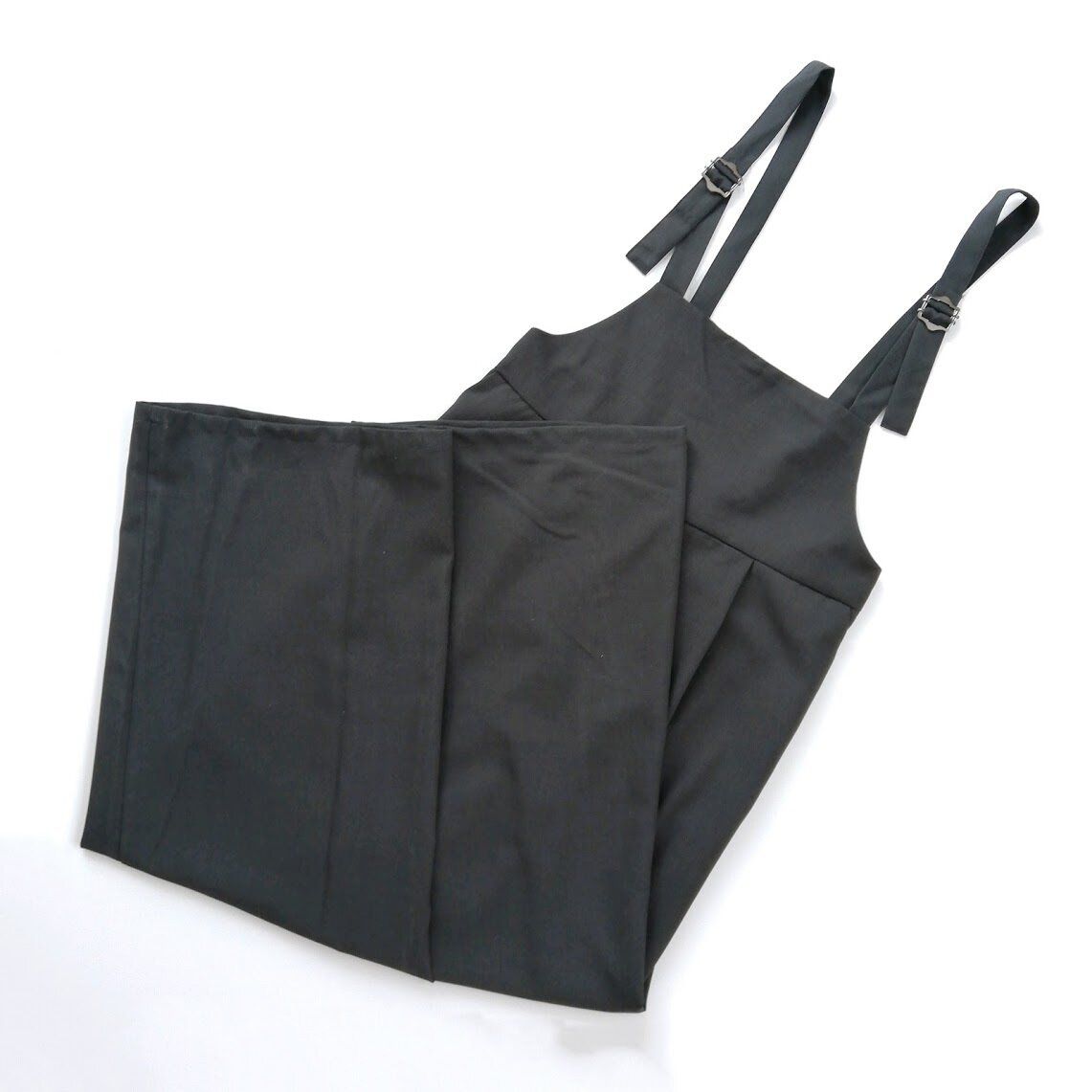 胸当て部分が低めなので、いわゆる”オーバーオール”感がなくスタイリッシュに着ることができます。タック入りでゆったりした腰回りなので、着ごこちも楽ちん!
