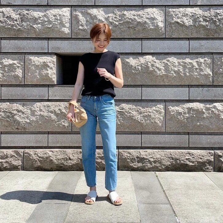 Instagramで見つけた「UVカットスーピマコットンフレンチスリーブセーター」を使ったお手本コーディネートをご紹介します。