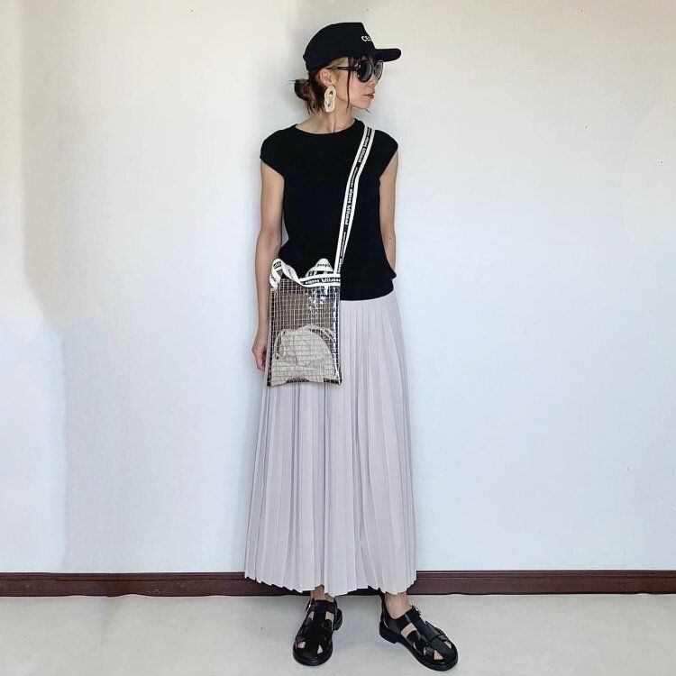 細リブ仕様とトップスをすっきり見せてくれるので、ロングスカートでも軽やかな印象になります。トップスがコンパクトにまとまっていることで、メリハリを強調できて着やせ効果も期待できますよ。