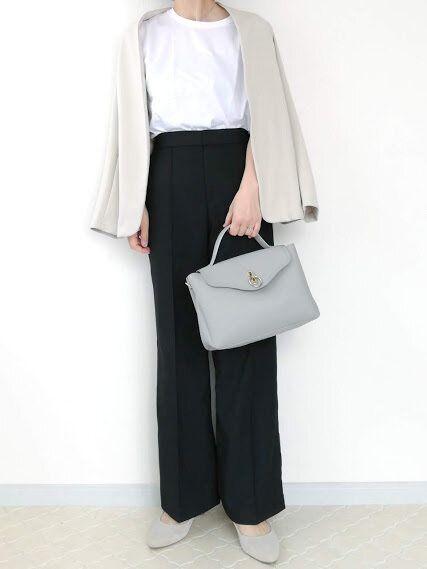 ONコーデのインナーにおすすめ。きれいめな質感が、ジャケットのインにぴったり。短めの袖なので、インナーにしてももたつかず着ることができて◎。