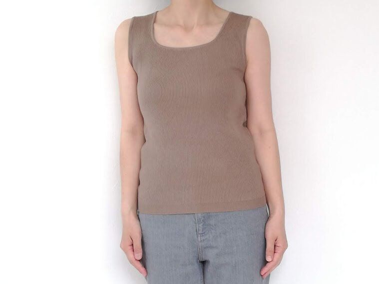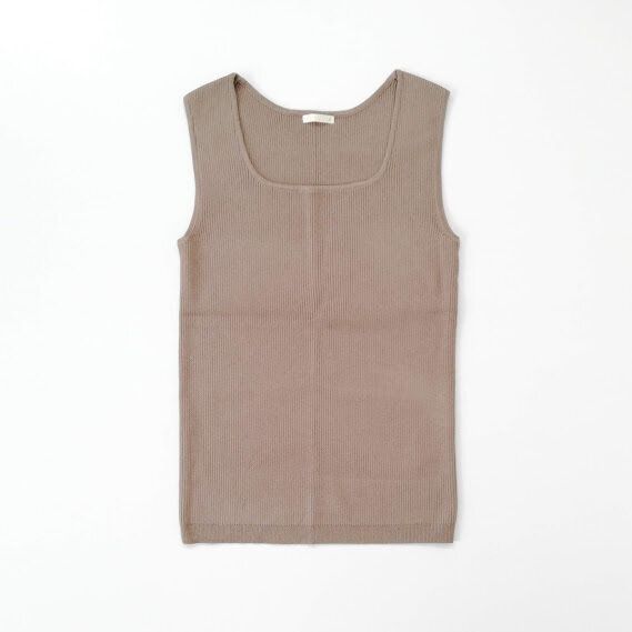 細リブがすっきり見せを叶えてくれるタンクトップ。広めのスクエアネックで、女らしく抜け感ある印象に。トレンドのシアーアイテムのインナーにぴったりです!