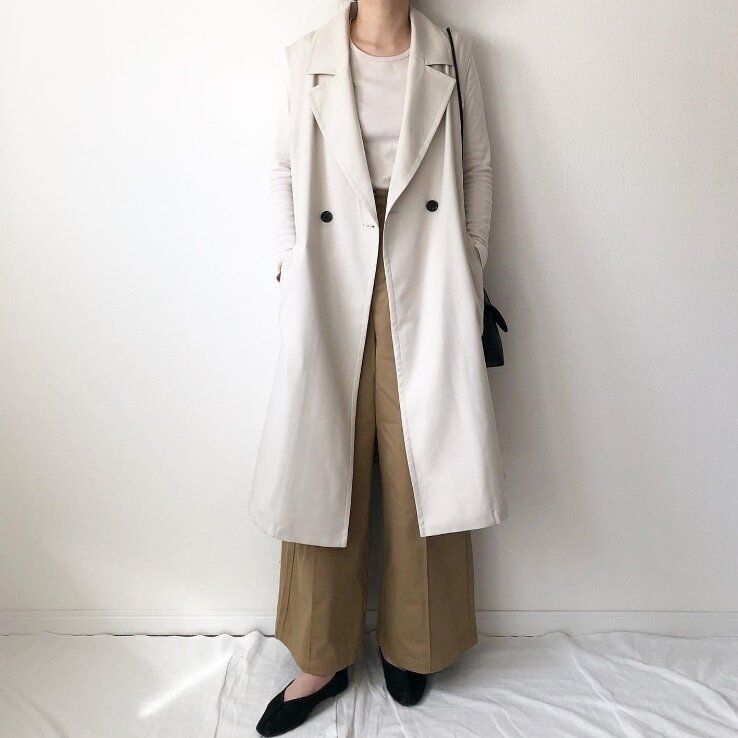 ロング丈ですが、ジレはスッキリと着こなせるアイテムなのでワイドパンツとも相性が抜群です。