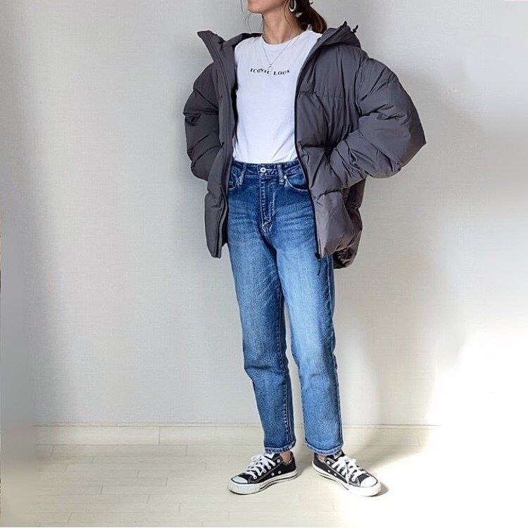 デニムにTシャツといったシンプルなコーディネートですが、あえてメンズサイズを着用することで、華奢な女性らしさが際立つカジュアルコーデに。