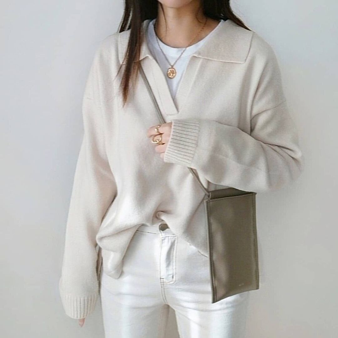 ネックラインがスッキリ見える「キーネックニット」