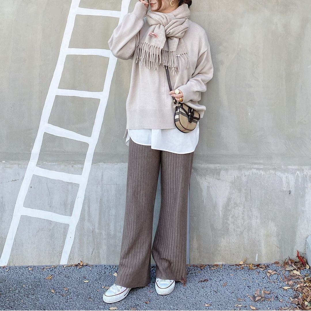 シャツやカットソーをインナーにした「レイヤードスタイル」も、この冬挑戦してみたい着こなしの一つでしょう。ですが、手持ちのトップスに合わせてもしっくりこない…と悩んでいるなら、セットになったアイテムをそのまま着てみるのはどうでしょう?「シャツテールコンビネーションセーター」(2,490円)は、秋に完売し、冬に新色が追加された人気アイテム。インナーはタンクトップタイプのシャツになっているので、他アイテムとのレイヤードにも使えます。