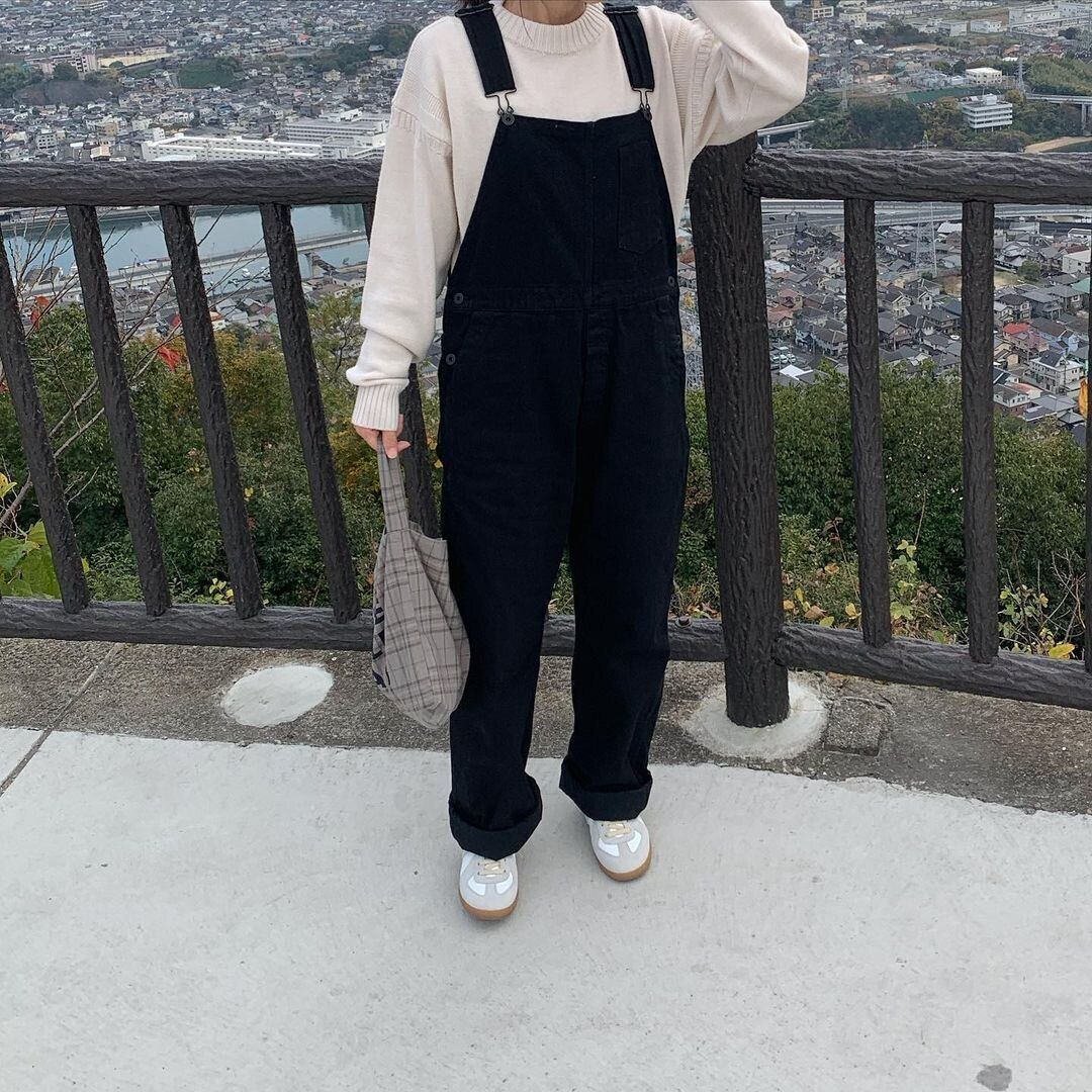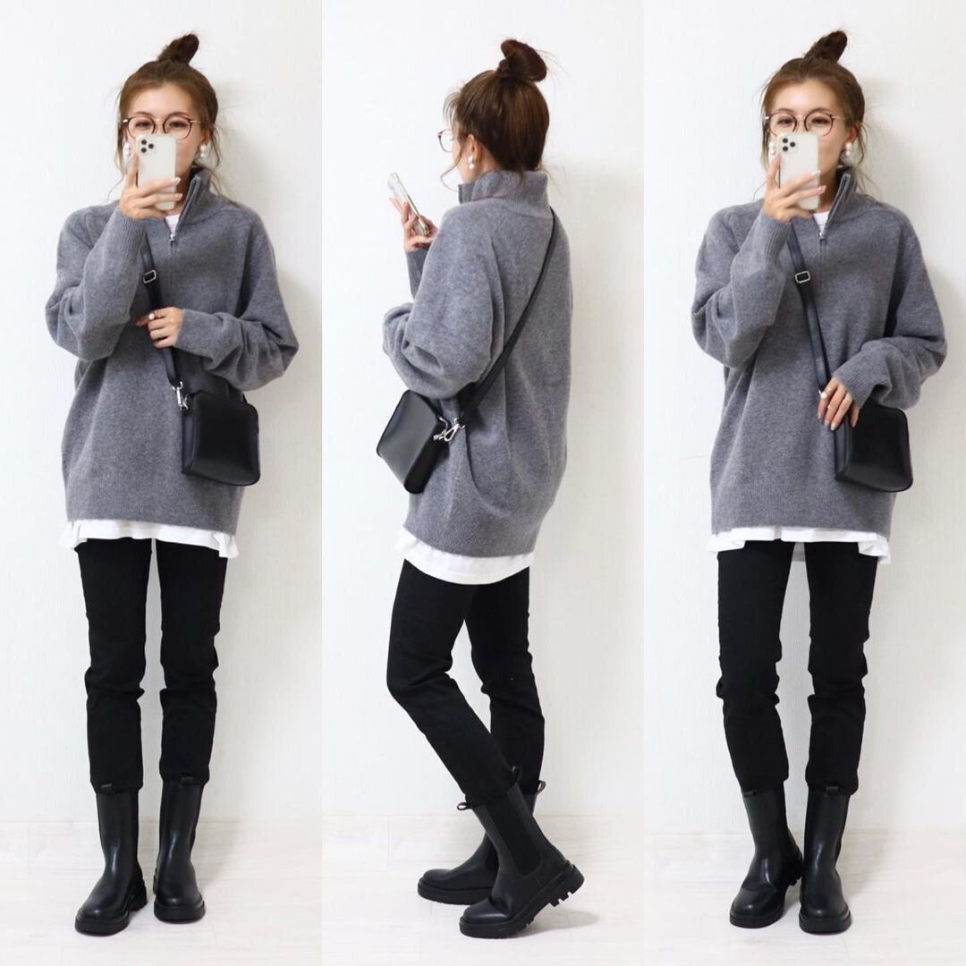 こちらのニットも同じくUNIQLO Uのメンズアイテムです。「ミドルゲージモックネックセーター」(1,990円)は、肩部分に切り替えがありデザイン性のあるニット。オーバーオールと合わせると最高にかわいい大人カジュアルに!ぶ厚すぎない生地感なので、アウターの下に着ても、着ぶくれ感がありません。
