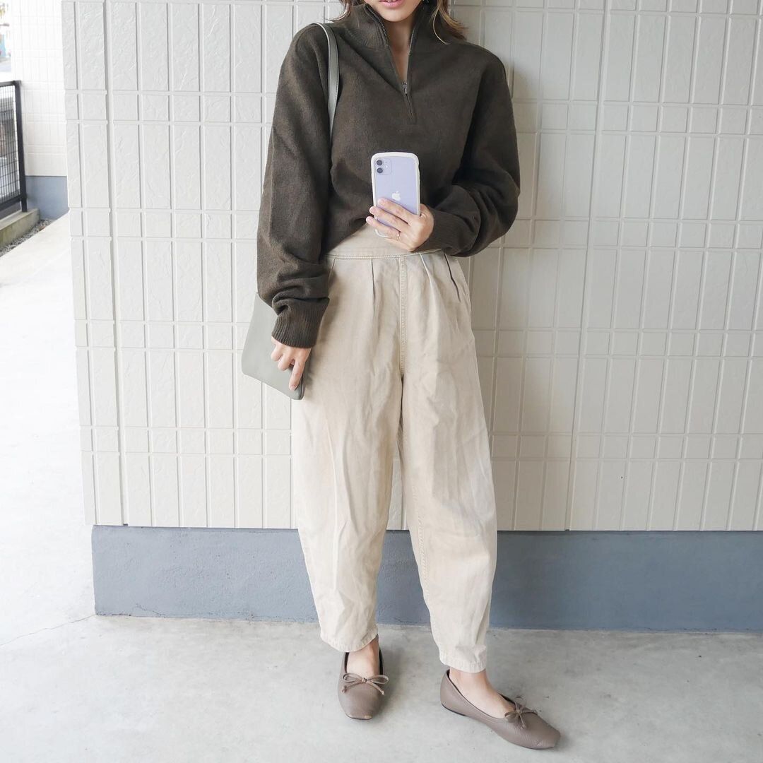 「スフレヤーンハーフジップセーター」(1,990円)は、胸元のジップがアクセントに。レイヤードする際もジップからインナーをチラッと見せることができます。