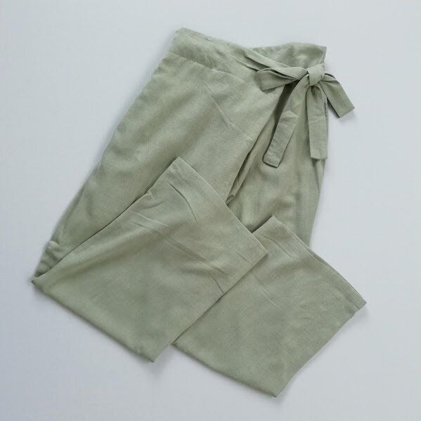 くるりとひと巻き、サイドできゅっと結んだデザインの「ラップワイドパンツ」は1,990円(2020年7月16日時点)。
