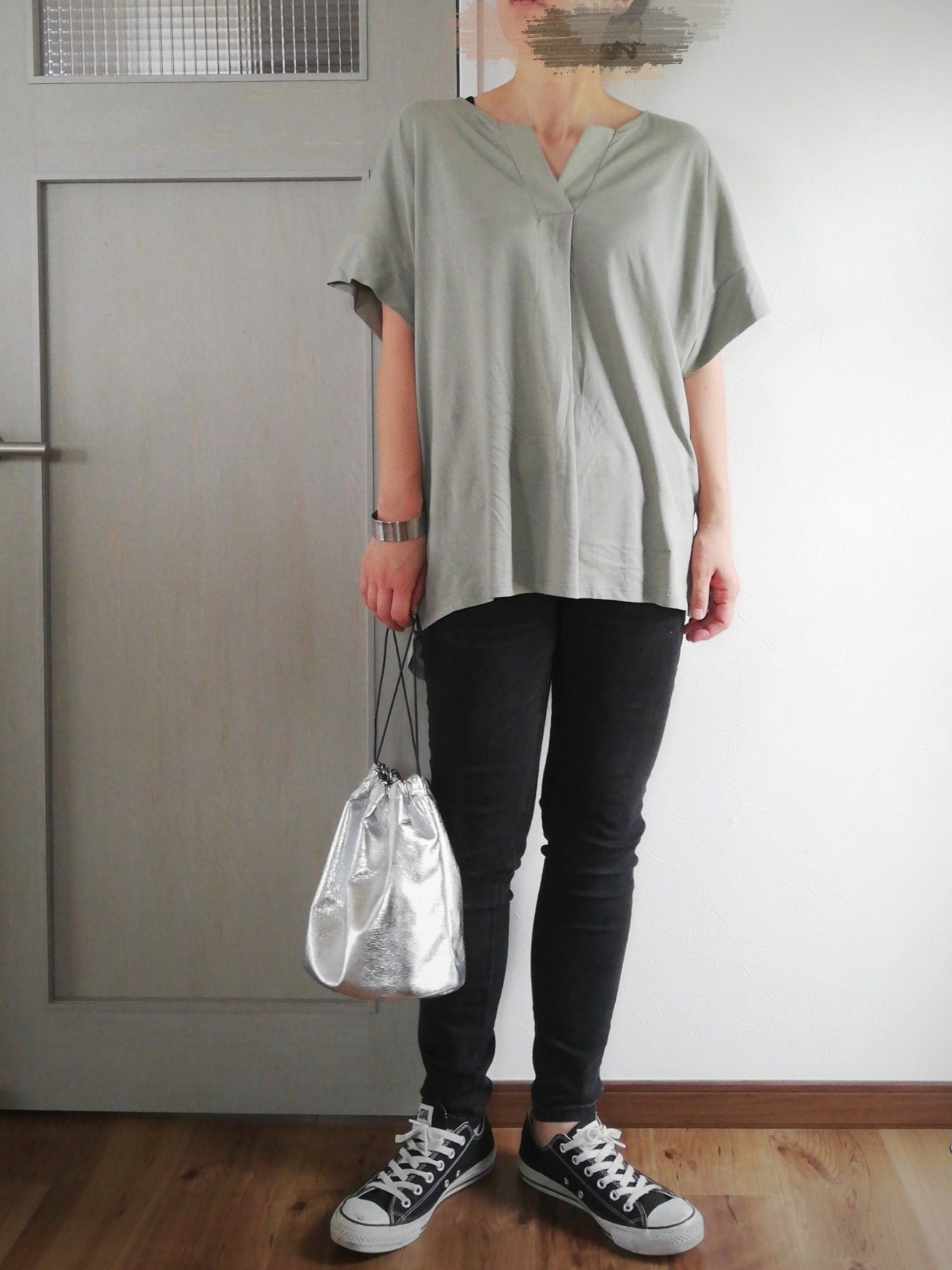 オーバーサイズTとスキニーデニムはカジュアルコーデの定番。黒スキニーはすっきり見える優秀アイテムですが、真夏にはちょっと重く見えてしまうかも。