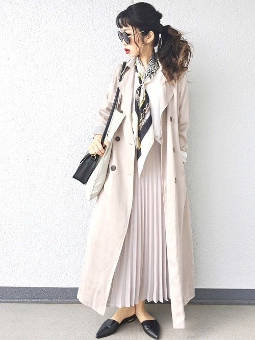 モノトーンコーデに映えるスカーフ