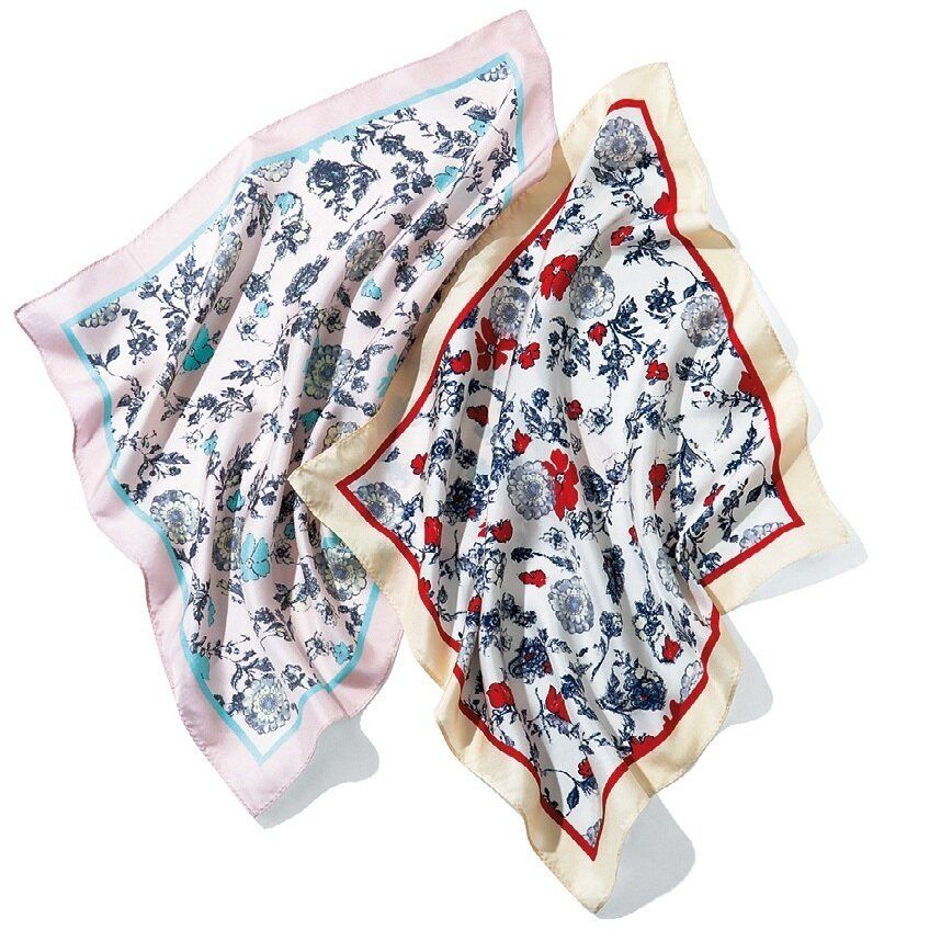 サッと首に巻くだけでコーデの春らしいアクセントに。「シルクプリントスカーフ」(オフホワイト、ピンク・全2色、ほか2柄全5色あり)/ユニクロ/イネス・ド・ラ・フレサンジュ