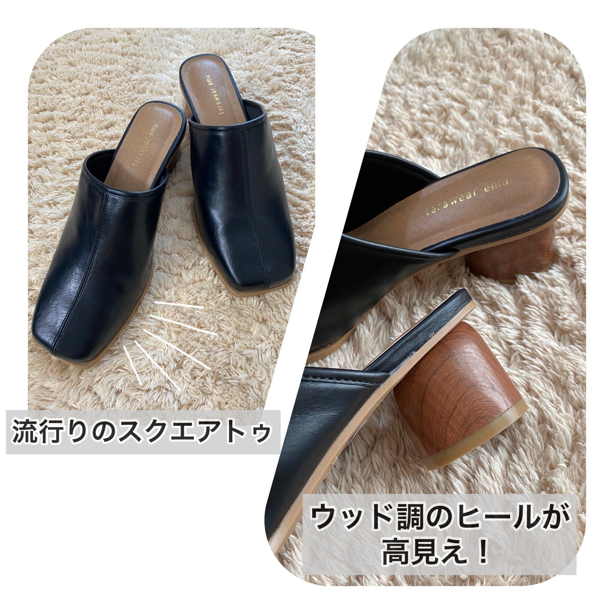 流行りのスクエアトゥでトレンド感があり、ヒールがウッド調になっているところにもこだわりを感じます。ヒールもちょうど良い高さで、スタイルアップと歩きやすさが両立できそうです。