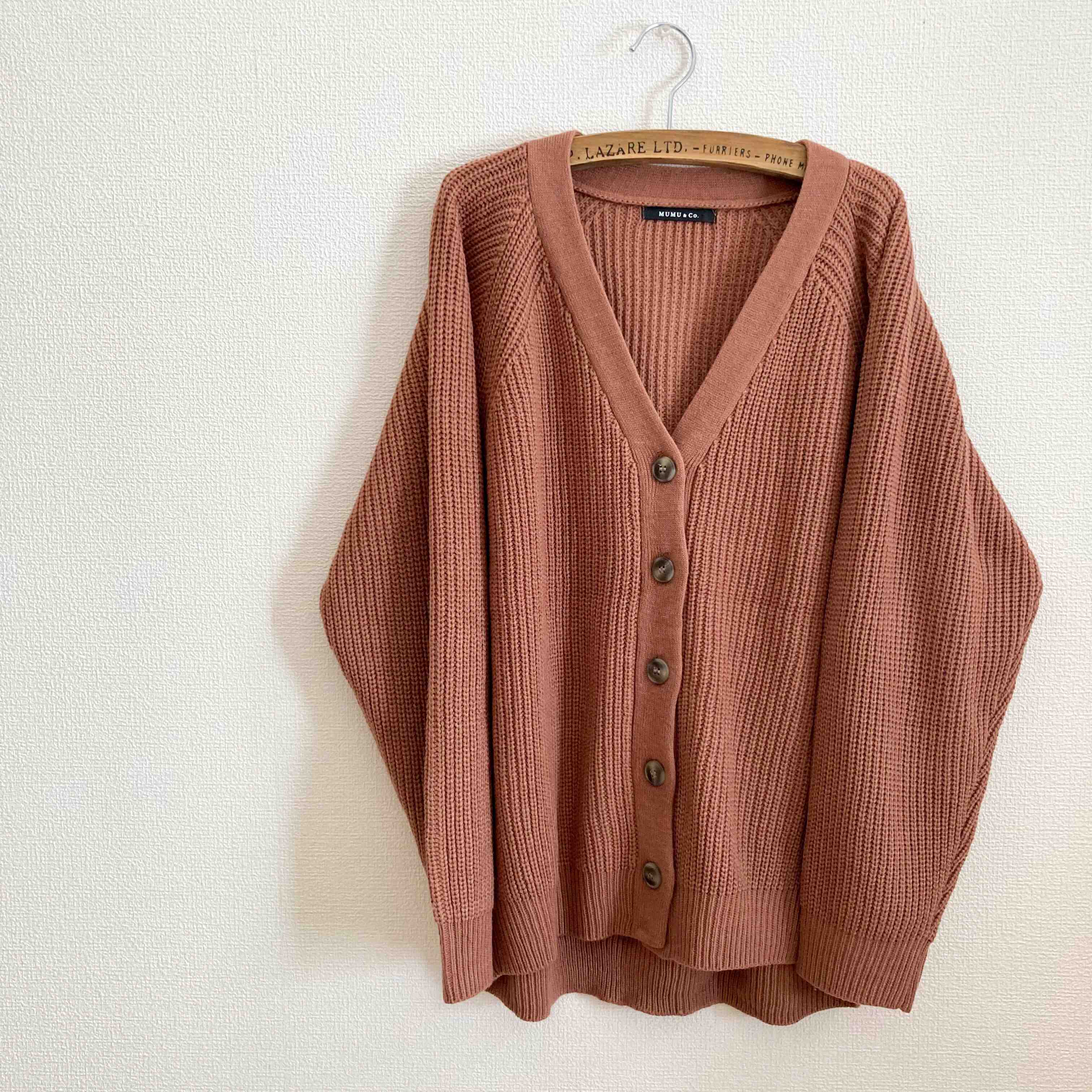 オレンジ寄りの温かみのあるピンクカラーが絶妙でとても可愛いです!大きめのサイズをゆるっと羽織るのがオススメ。