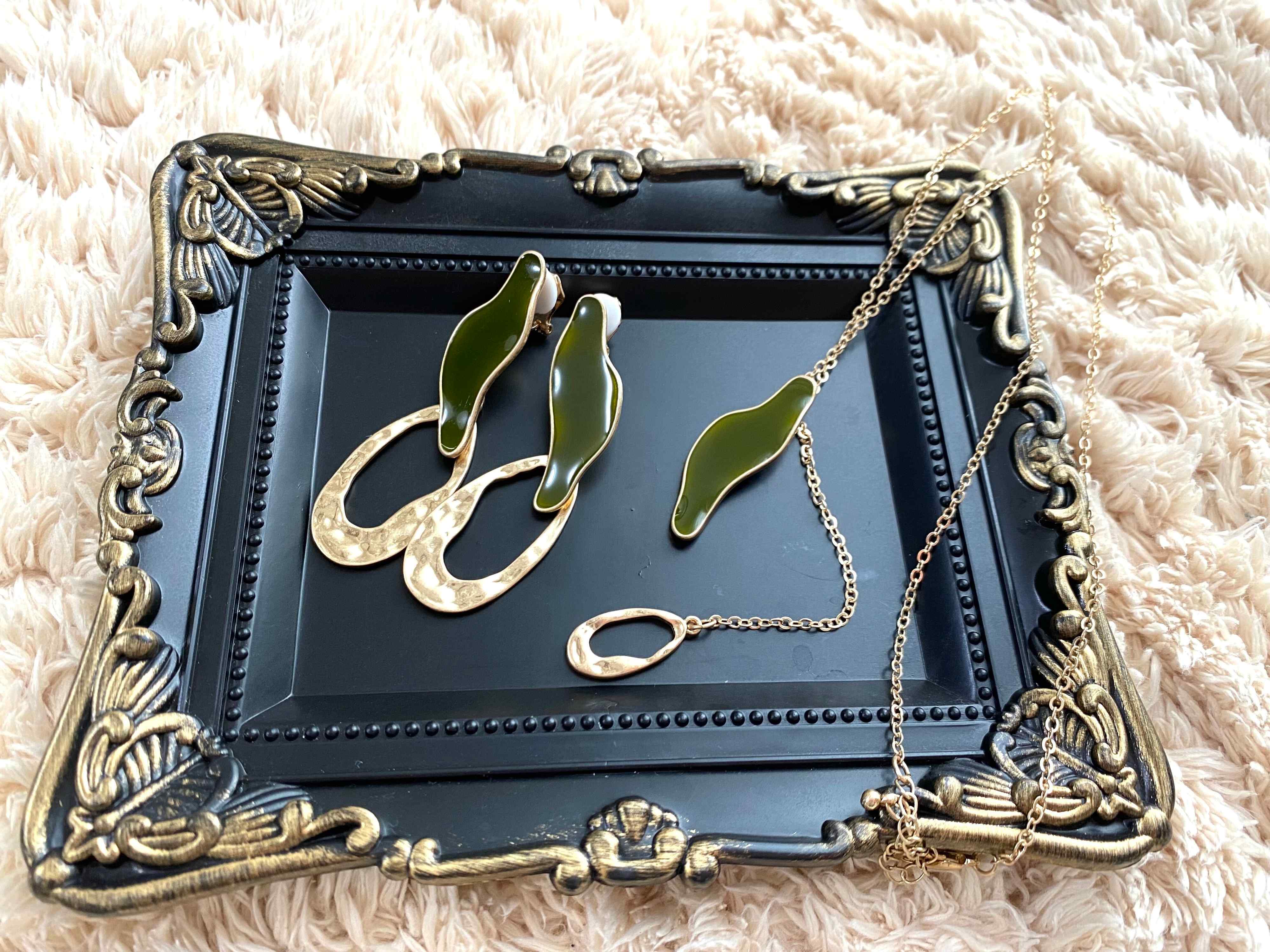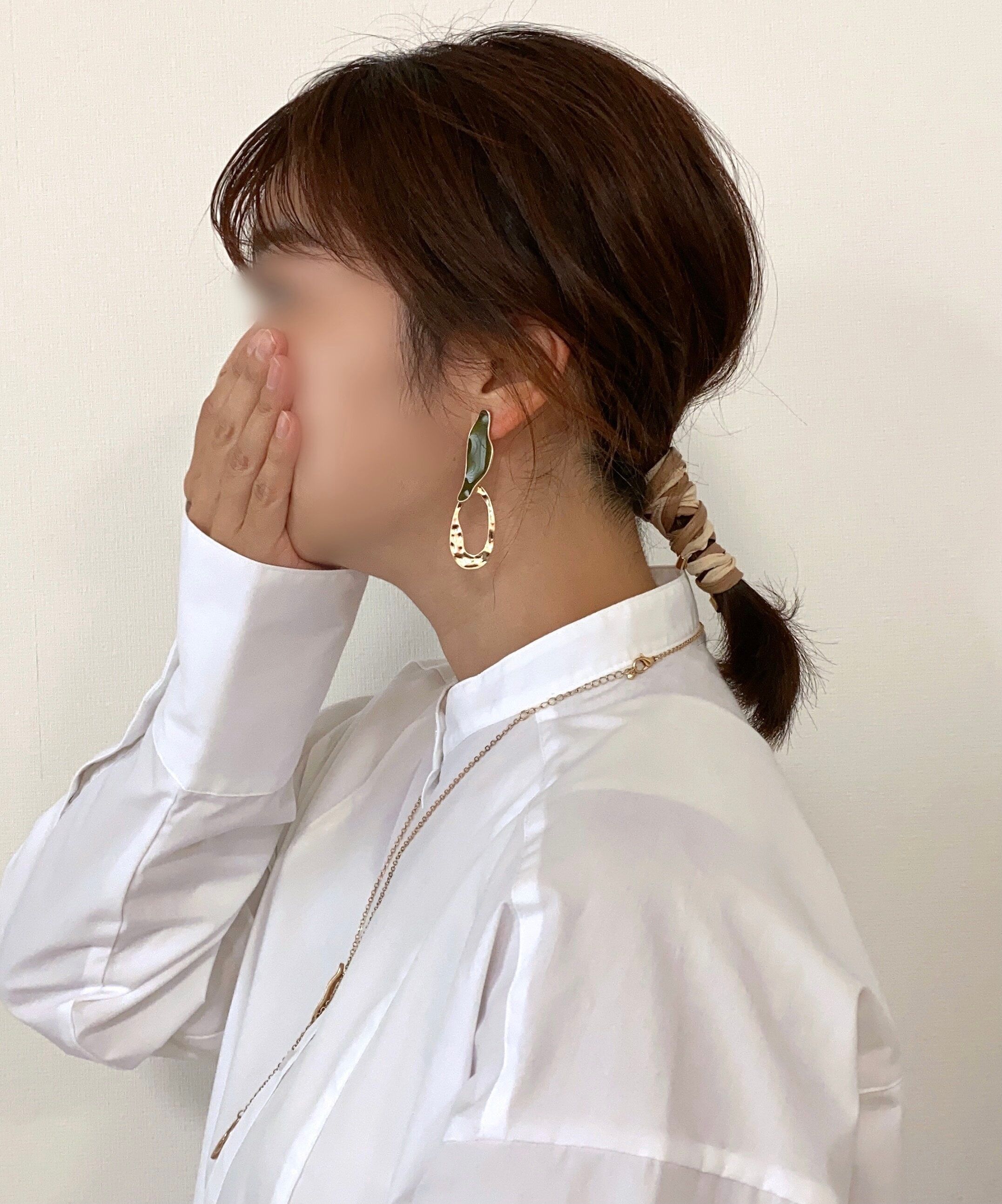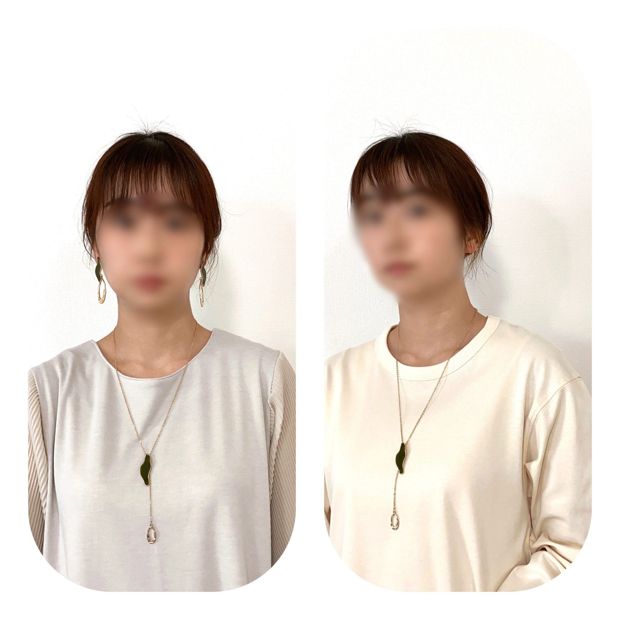 セットのイヤリングも一緒につけてみました。ネックレスと統一感があることでより洗練された印象に。
