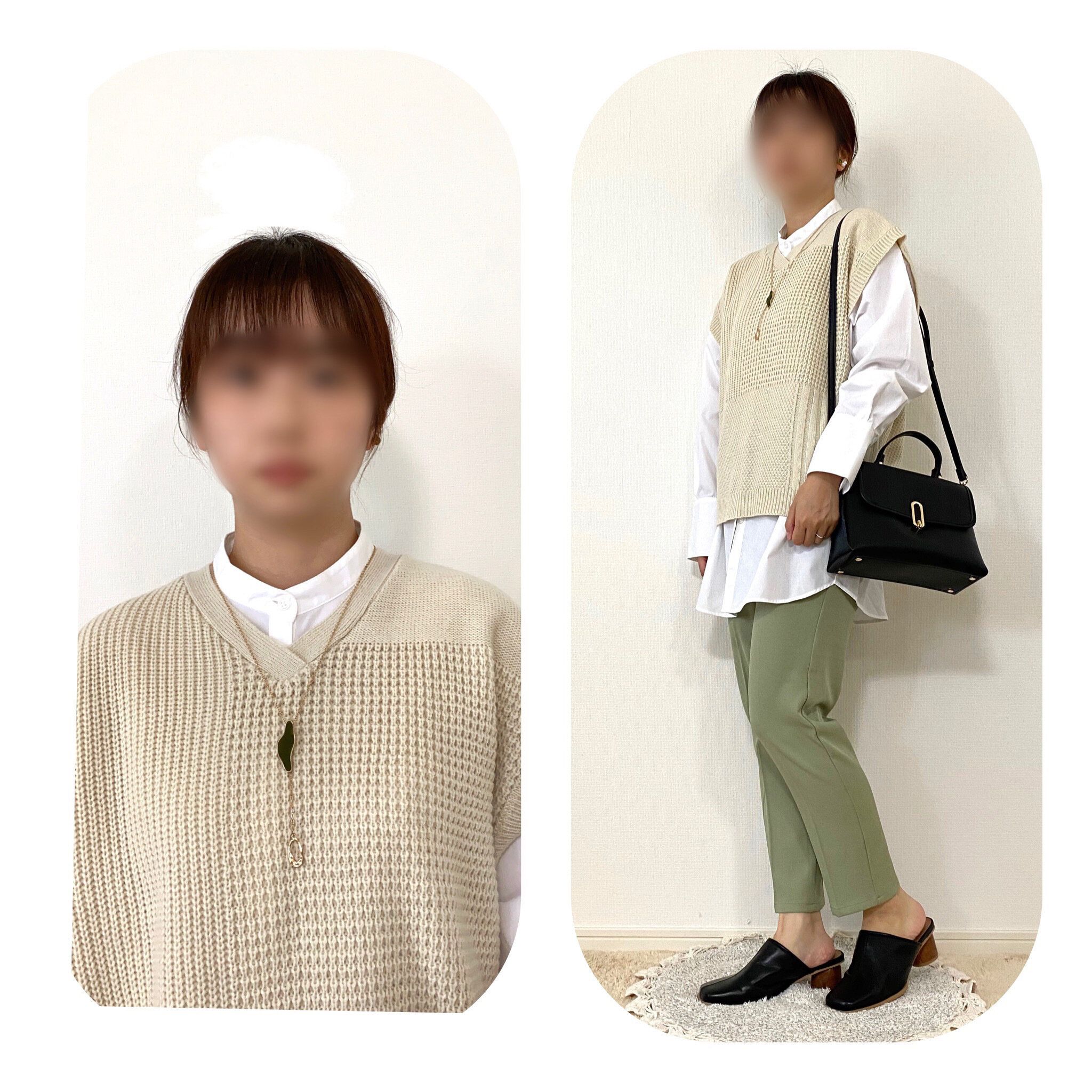 ベストでレイヤードするコーデは今のトレンドですがパンツスタイルでシンプルに合わせるとマニッシュコーデに寄りすぎてしまうことも…