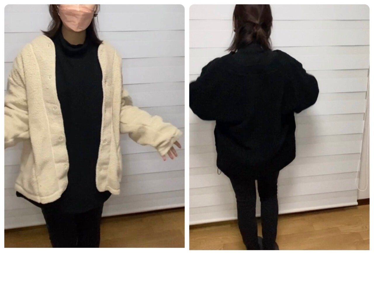 身長163センチ、標準体型の私。アイボリーはLサイズ、ブラックはLLサイズを選びました。大きめで、Lサイズでもたっぷり感があり、LLサイズだとお尻までスッポリ隠れます。