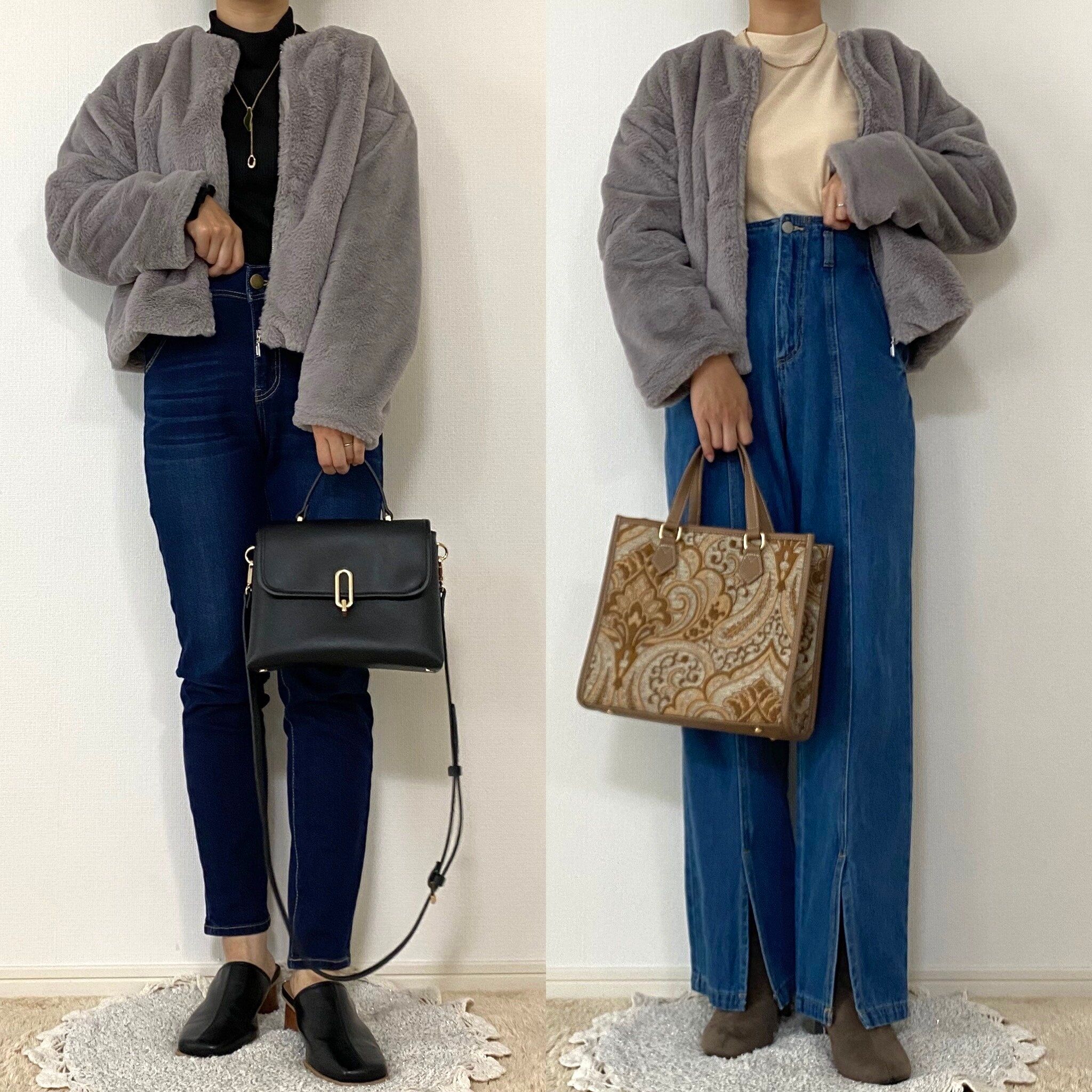 ワイドなデニムと合わせてもファージャケットの丈が長すぎないのでダボっとしすぎずバランスも取りやすいです。