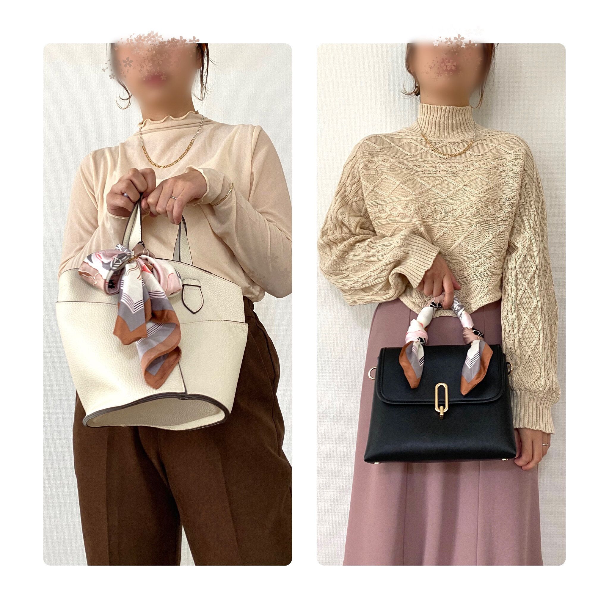 黒いバッグのように持ち手に巻き付けていつものバッグをアップデートするのもおすすめ。