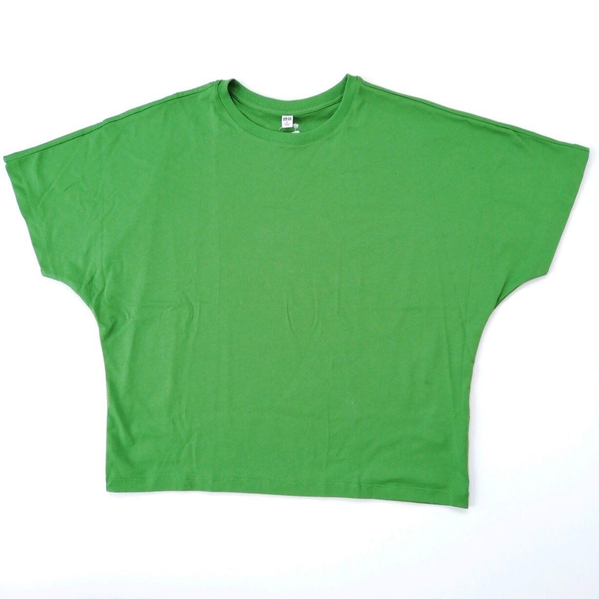 今期ユニクロで人気のTシャツ、「ドルマンT(半袖)」をゲット!今年らしいグリーンTシャツは、きれいめにもカジュアルにも着こなせるのでアラフォーにもおすすめ。