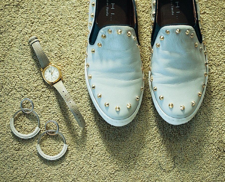 - パンツと同系色の”レザー小物”でさらに高見え