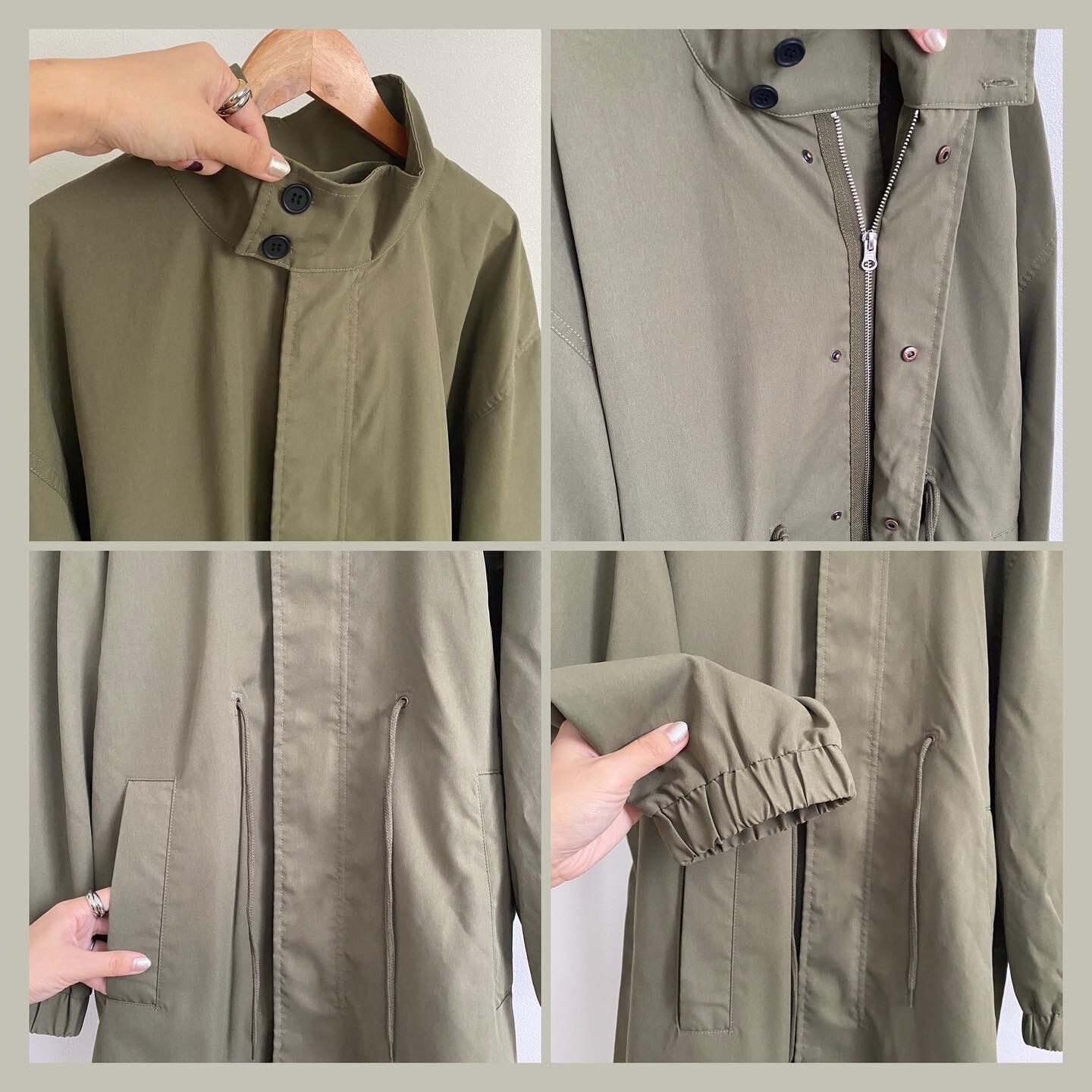 深めのカーキカラーがとても高見えなミリタリーコート。