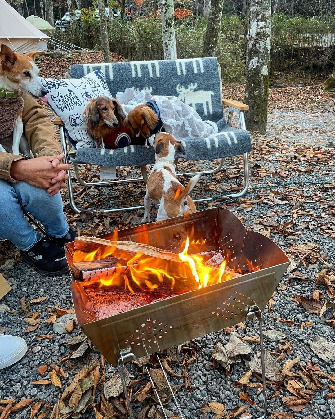 最後は、焚き火をまったり楽しみたいかたは要チェックの、「ワイドフォールディングスクエアグリル」です。公式サイトによると5,800円で、折りたたみ可能、耐久性があるステンレス仕様の商品で、ワークマンの「アルミ燃え広がりにくいローチェア」との併用もおすすめですよ。投稿内でも、「とてもよかった(軽さ、コンパクトさ、組立てやすさ)安さも!」とレビューしているほどです。