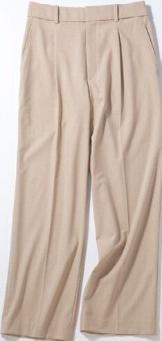〈ベージュのタックワイドパンツ〉オンもオフも無限に着まわせる神パンツ。ユニクロでバズリまくりの1本。ハイウエストかつほどよいワイドシルエットで美脚見えを実現。色もあらゆるトップスと合う!