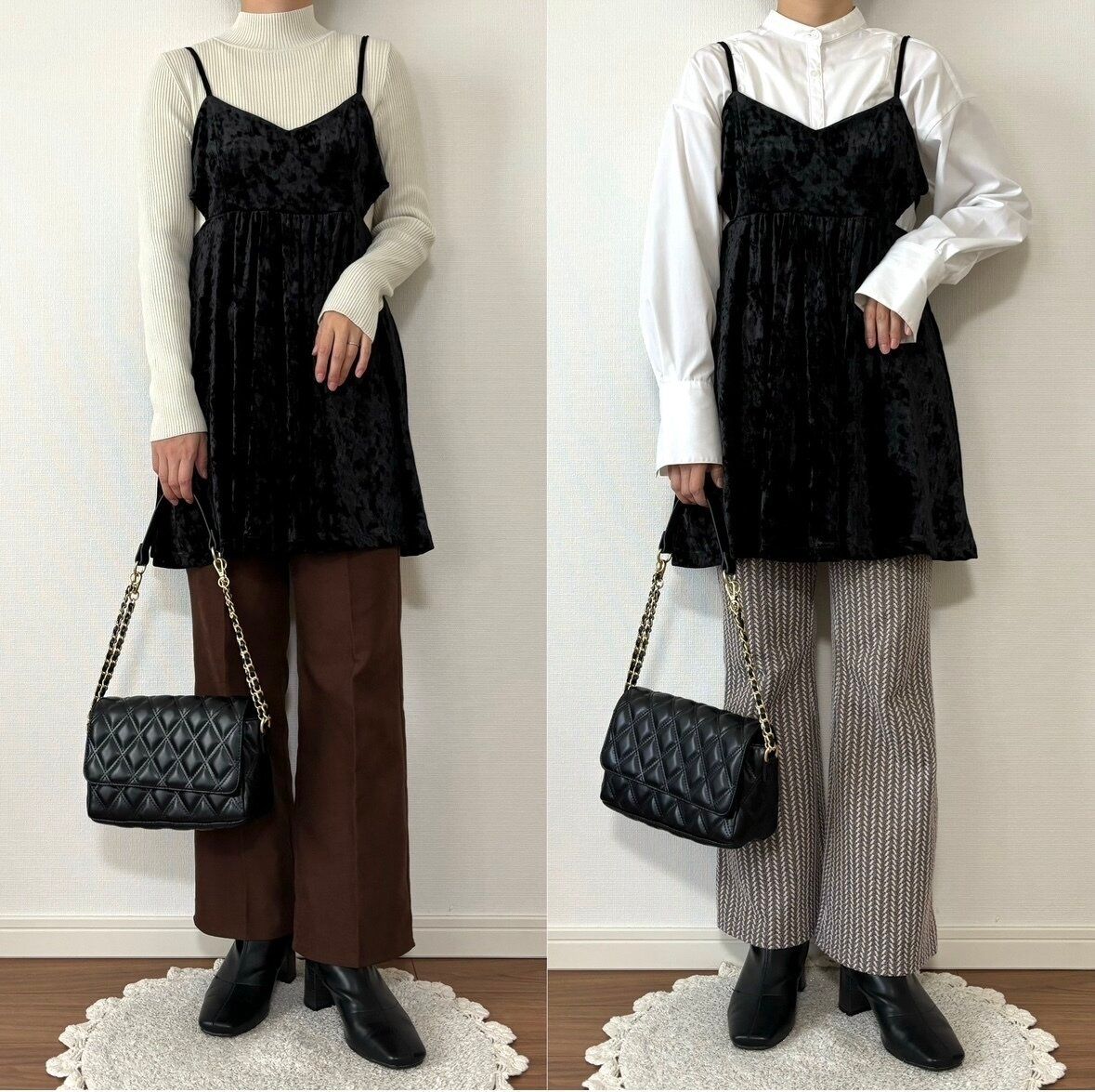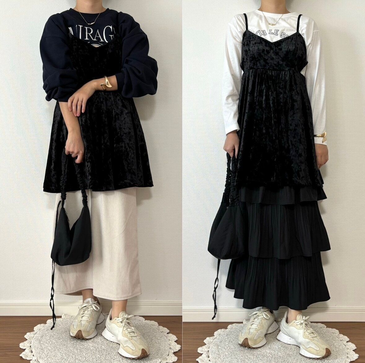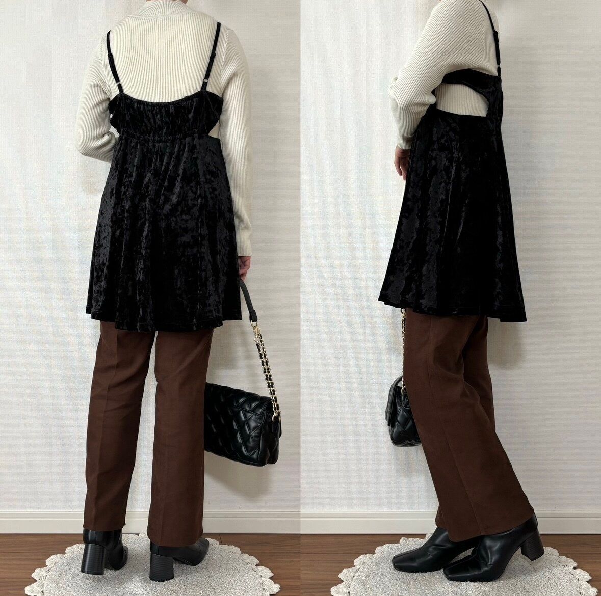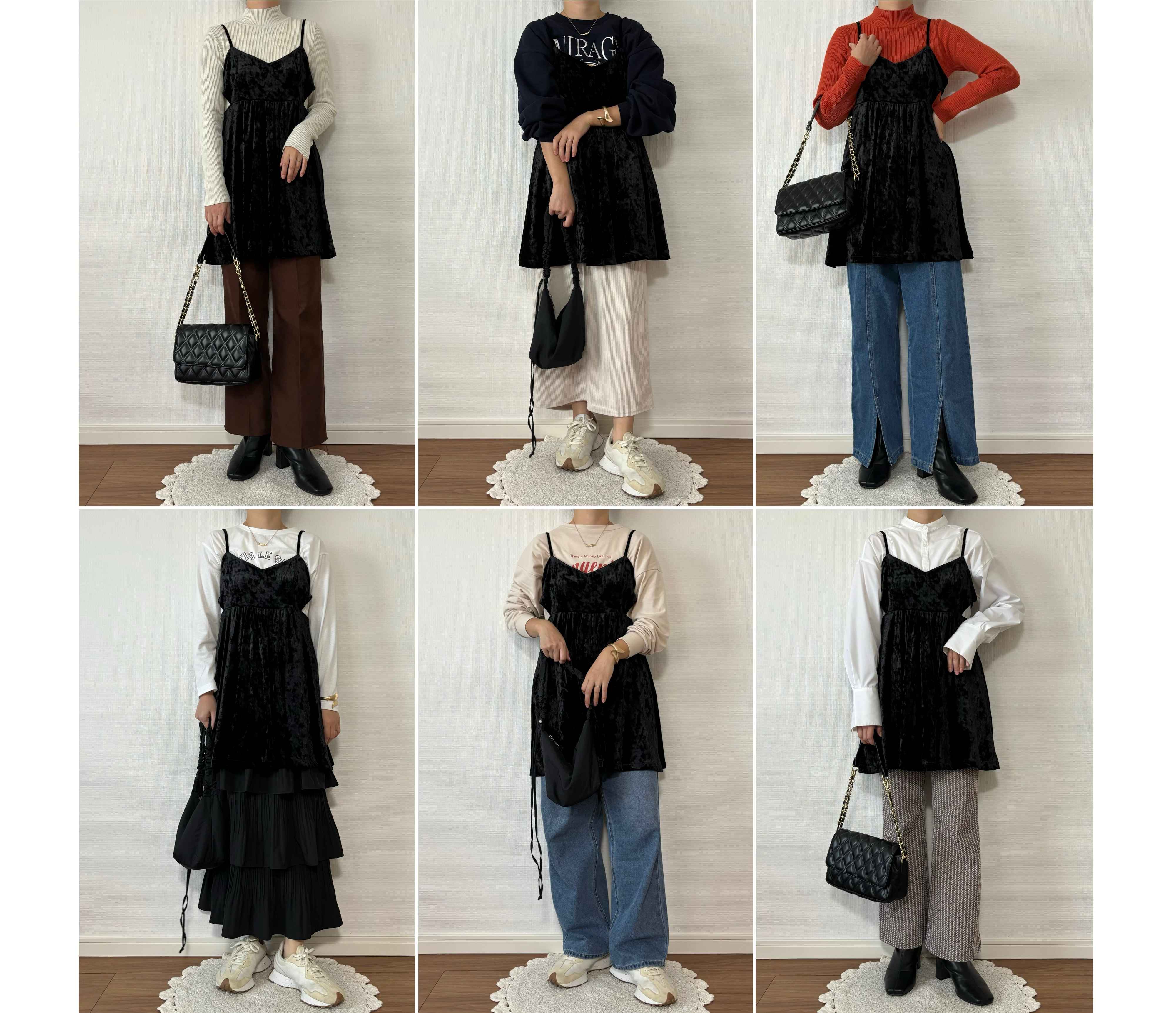 難易度の高そうなベロア素材でもブラックならコーディネートに馴染みやすく使い勝手抜群!