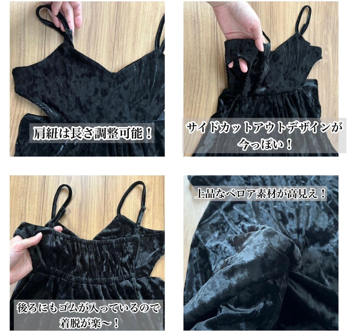 季節感のあるベロア素材のビスチェキャミソールで、サイドがカットアウトのデザインになっておりトレンド感抜群です!