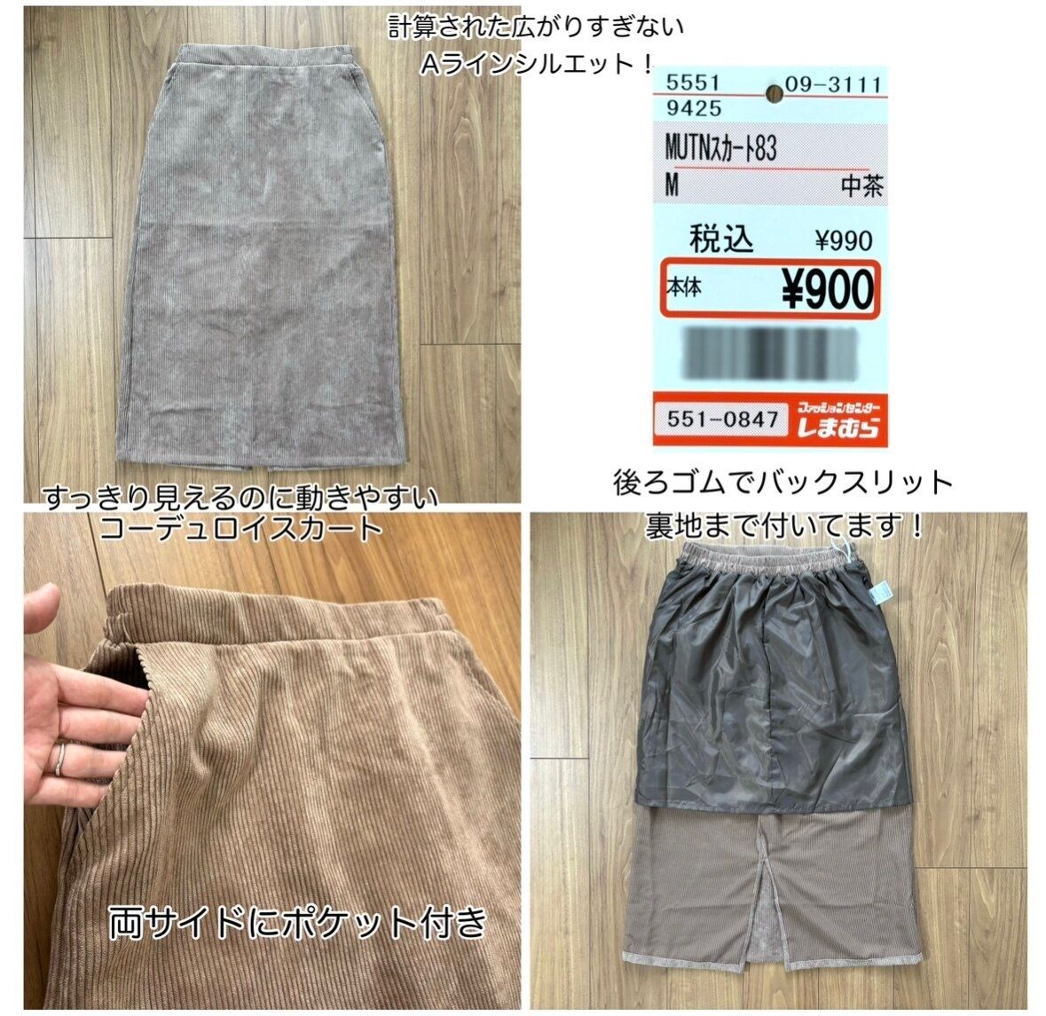 スカートもパンツも990円の低価格ながら両サイドにポケットが付いており、後ろゴムで穿き心地は楽ちん。