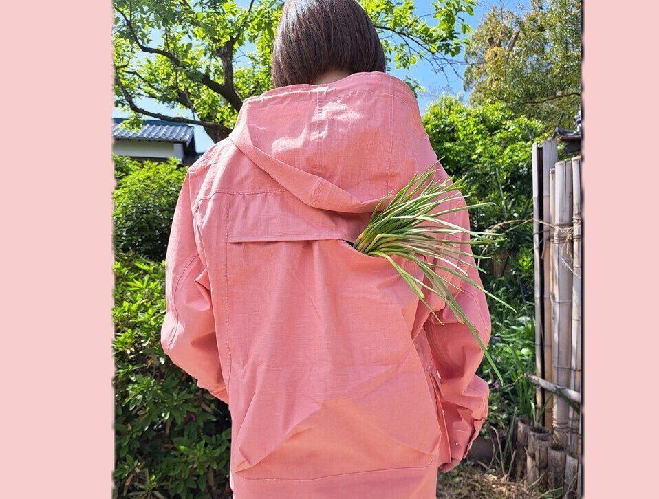 実はこのパーカー後ろが大きなポケットになっているのです。遊んで野菜などを入れたりしていますが、正直言って何に使うのか?私は見出せませんでした。自転車に乗る人には、背中に物を入れられるのでいい!という意見も。さらに、LCCの飛行機に乗るとき、手荷物だと重さが関係するけれど、ポケットにいろいろ詰めておけば大丈夫だから、重宝しているという友人もいて、すごくビックリしました。そんな使い方があるのです。
