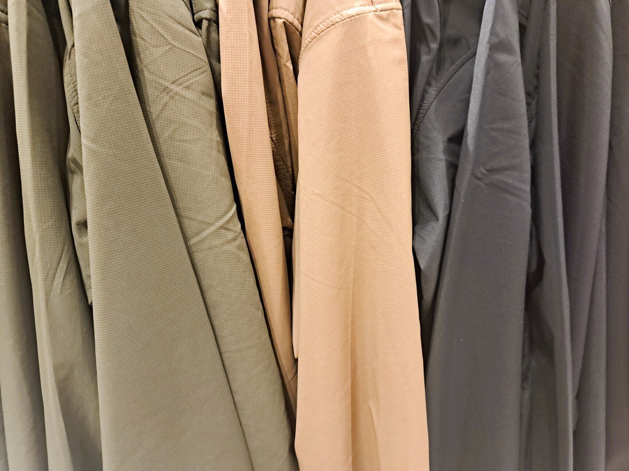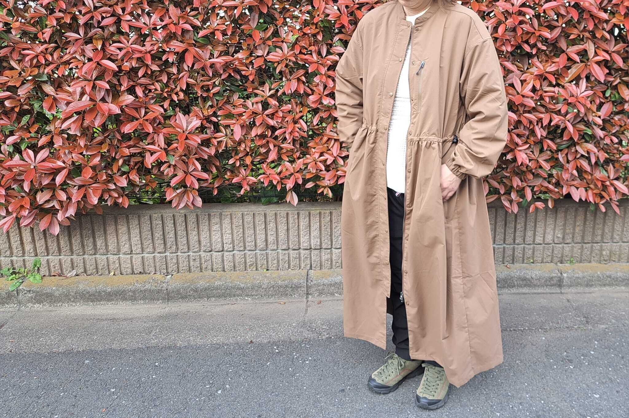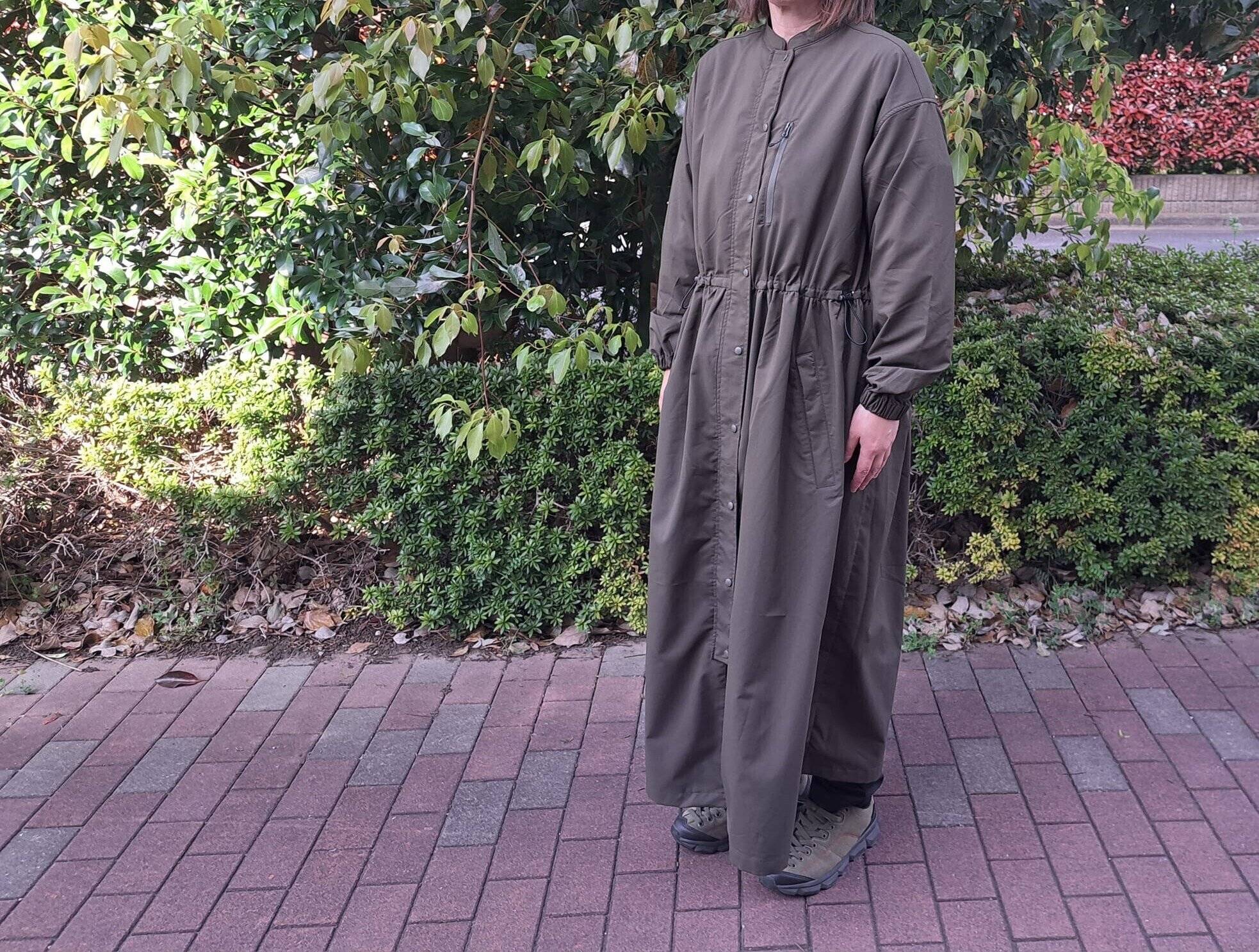 撥水やUV加工があるのでアウトドアでも活躍しますが、よそいきコーデでも問題なく、外出時に何を着よう?と悩む時間がもったいないので、そのときは即、この1着を手にして手抜きコーデしてます。