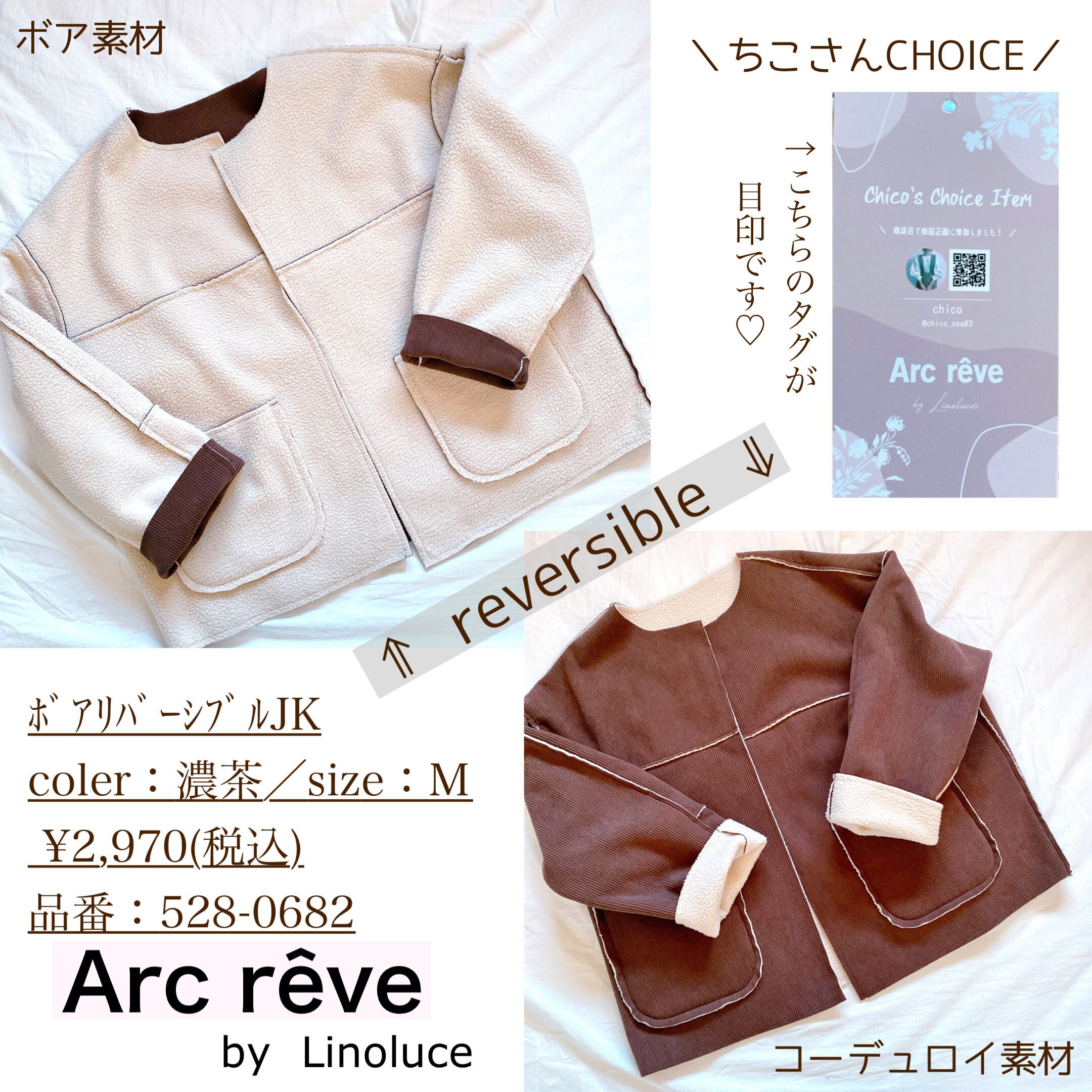 こちら、人気インフルエンサーchicoさんのチョイスアイテムとしてInstagramで話題の ボアリバーシブルジャケットです。