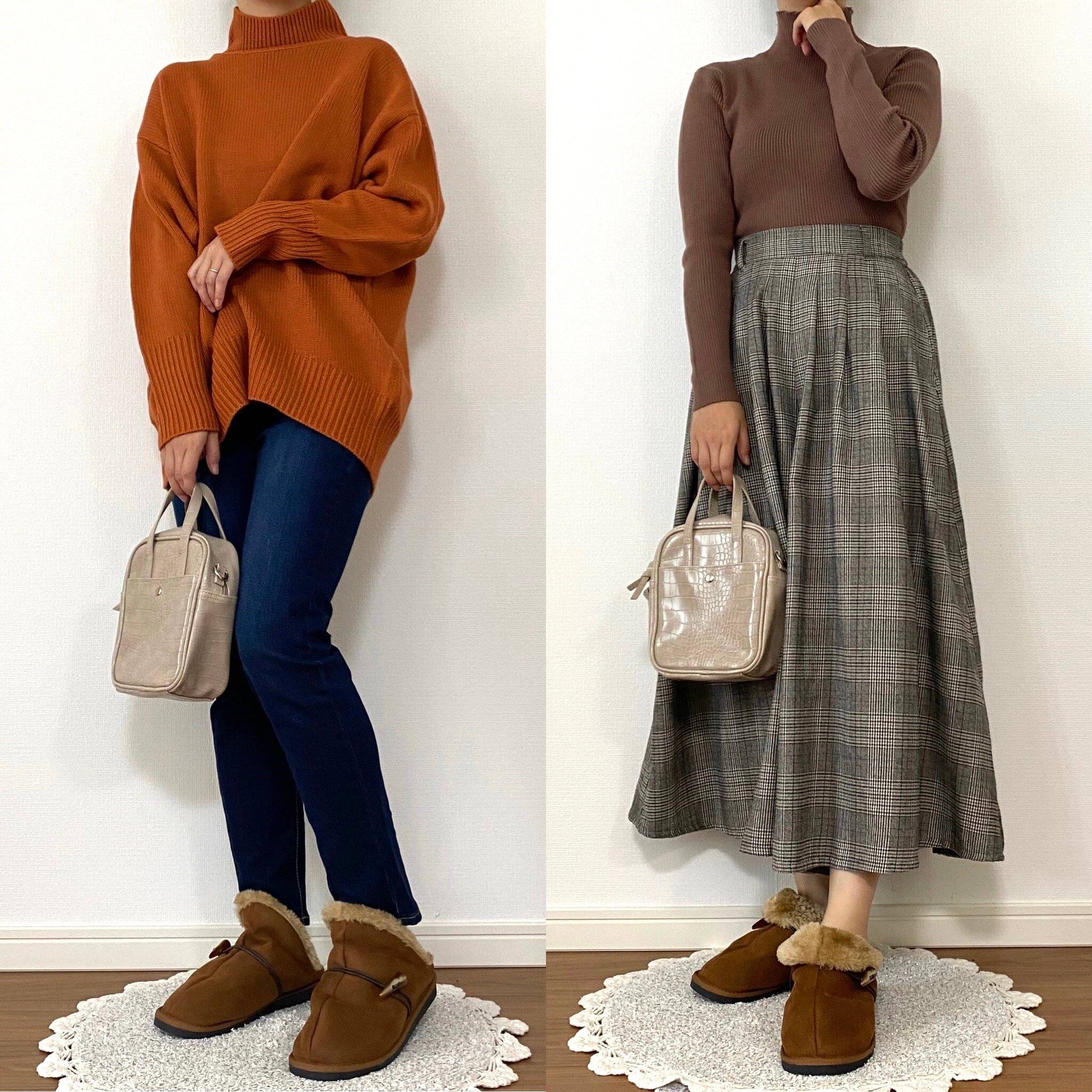 シューズにボリュームがあるのですっきりシルエットのスキニーと合わせてもバランスが良さそうですね!ムートン風の生地感とボアでシンプルコーデにも季節感をプラスできます。